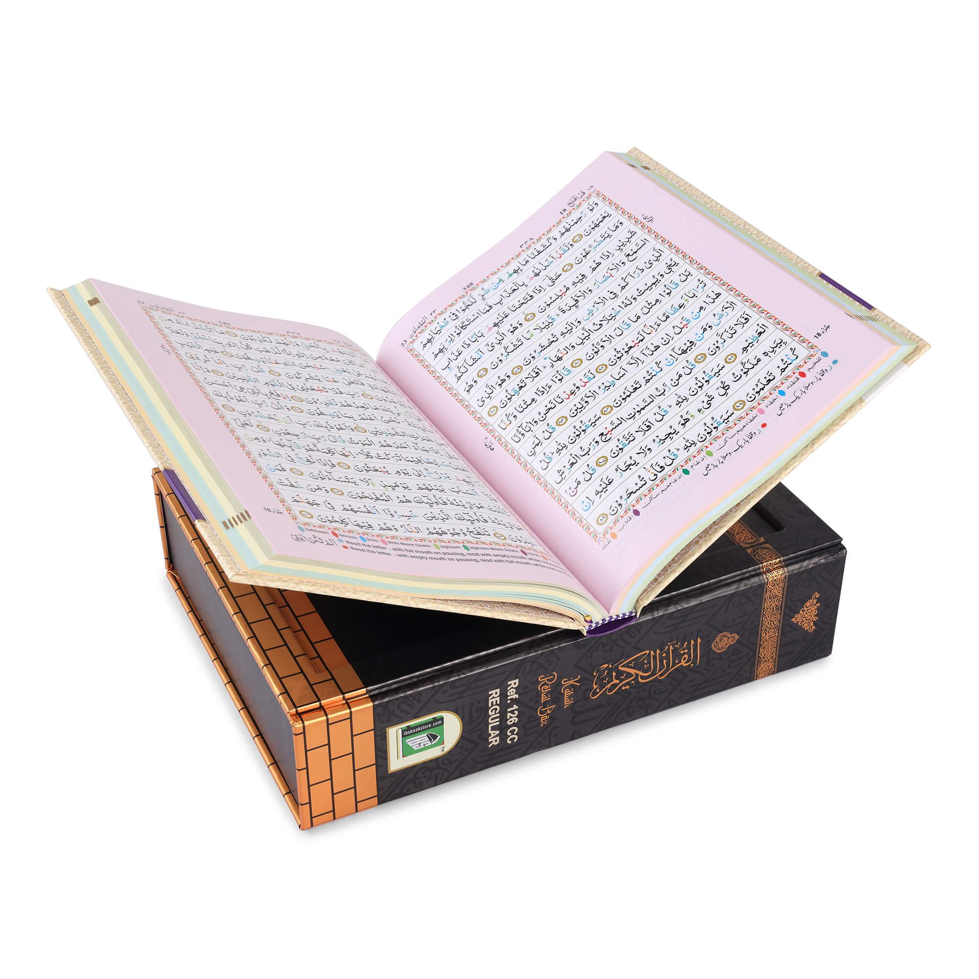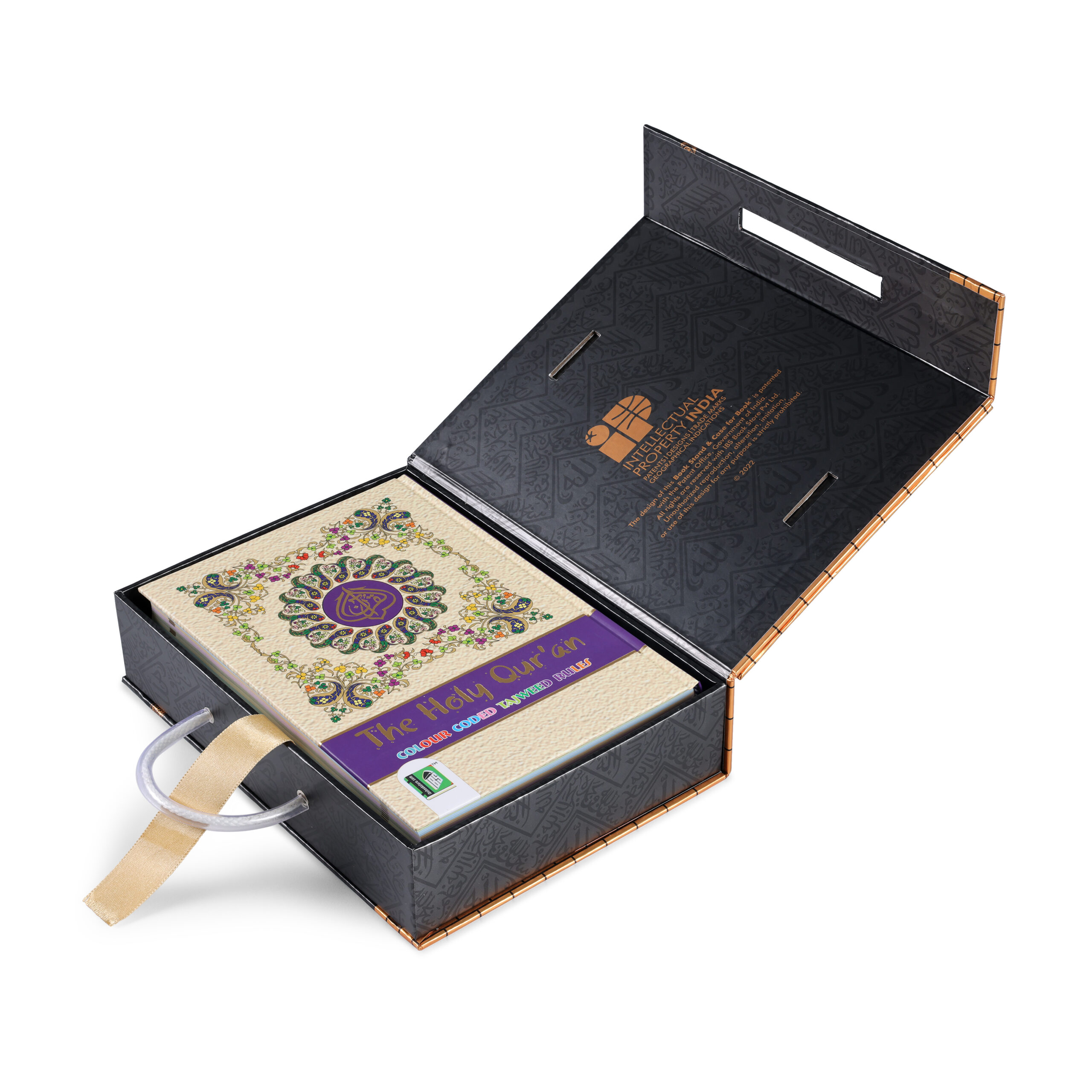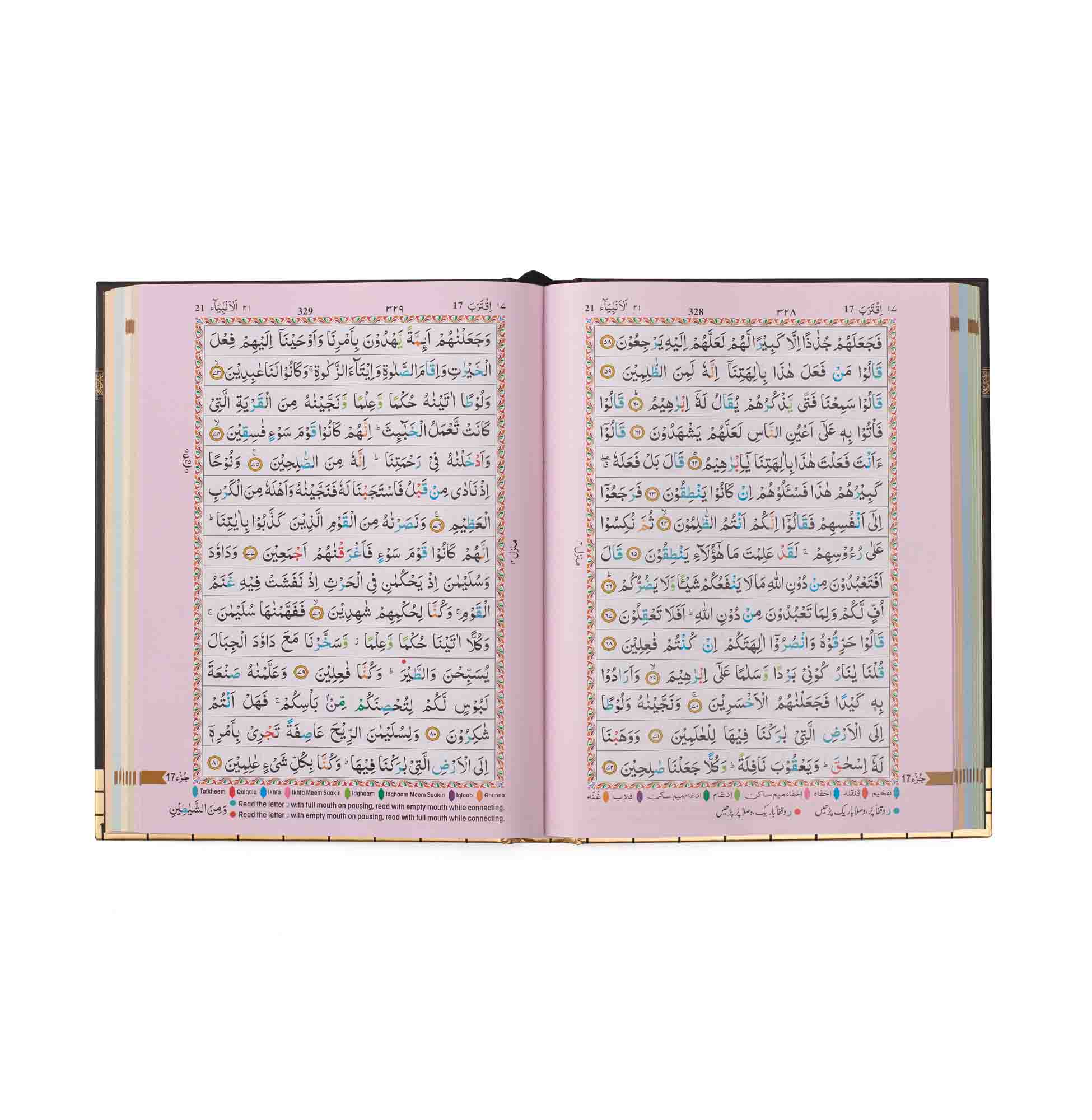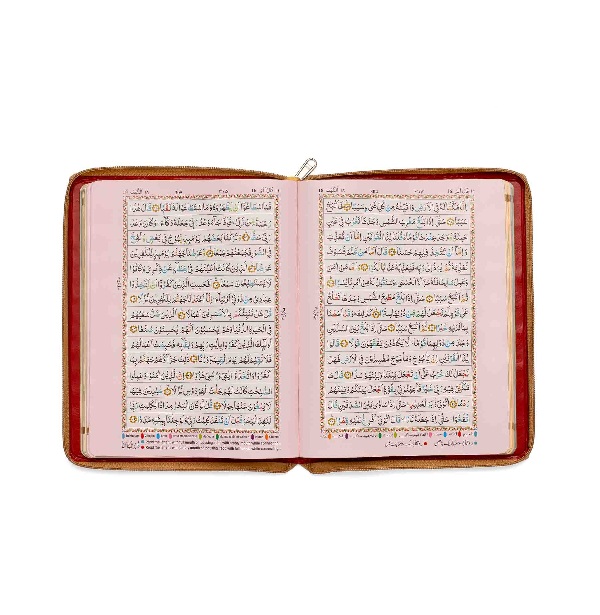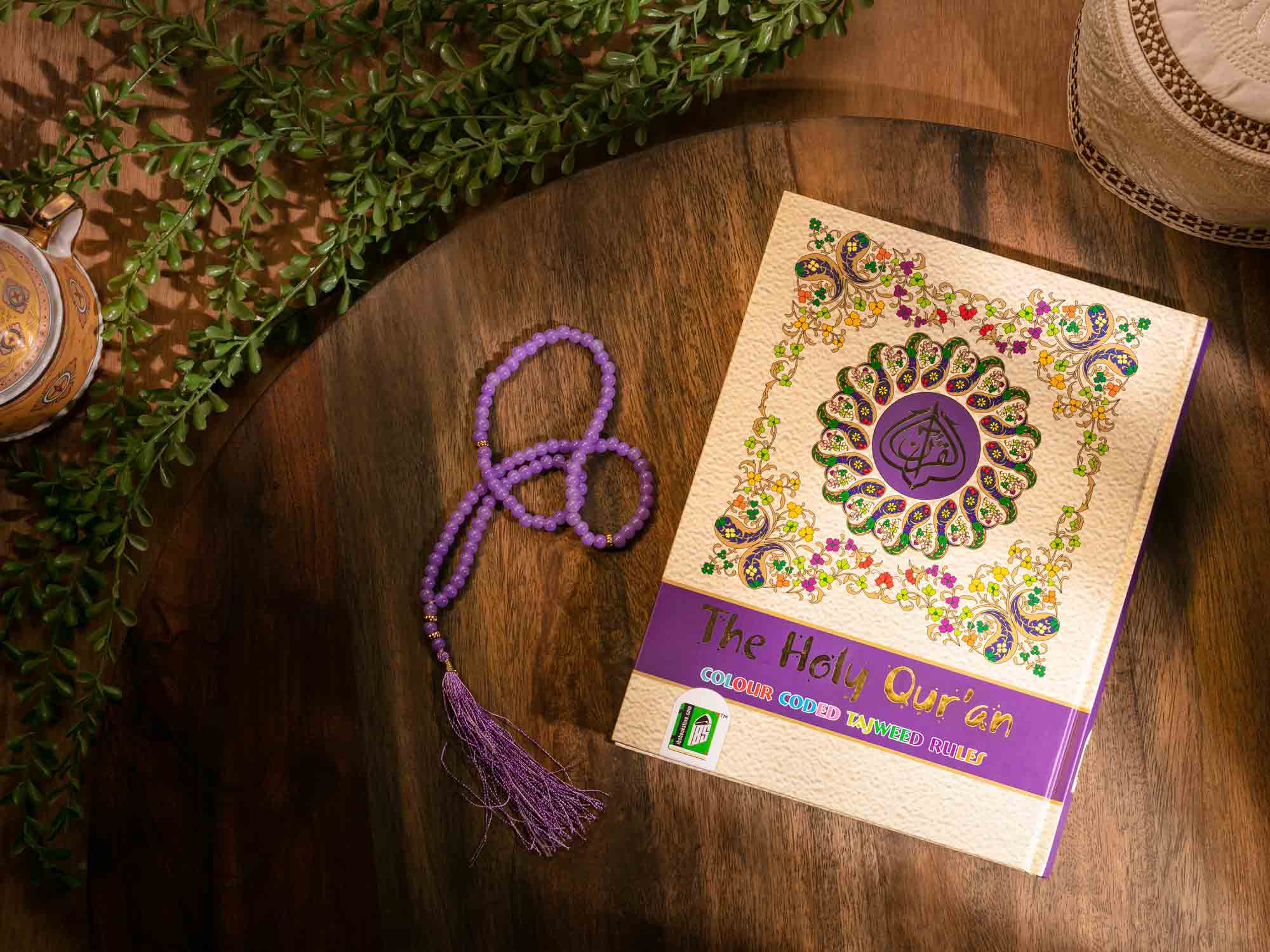 - Colour Coded Tajweed Rules to enhance pronunciation and fluency.