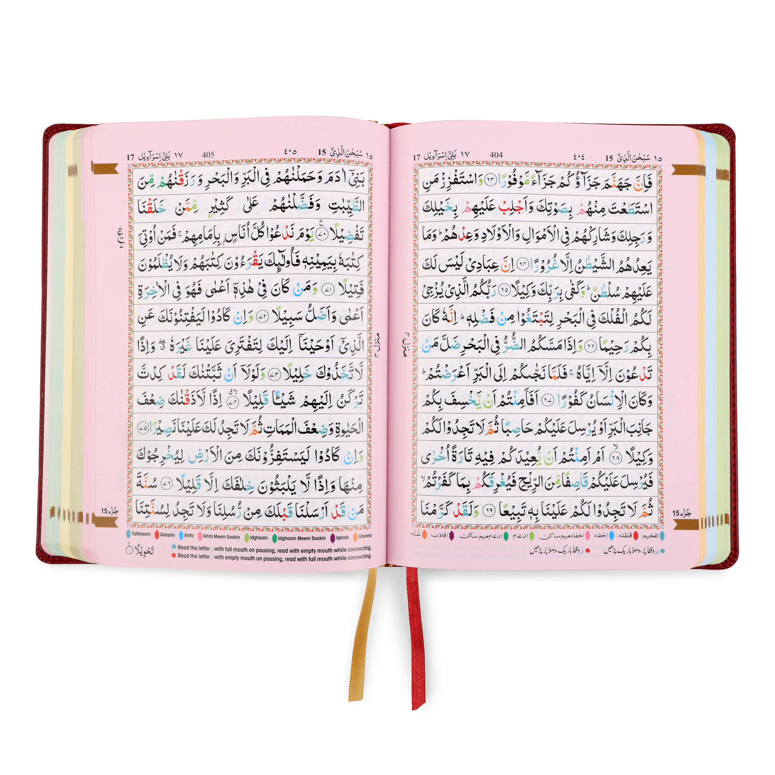 - Colour Coded Tajweed Rules to enhance pronunciation and fluency.