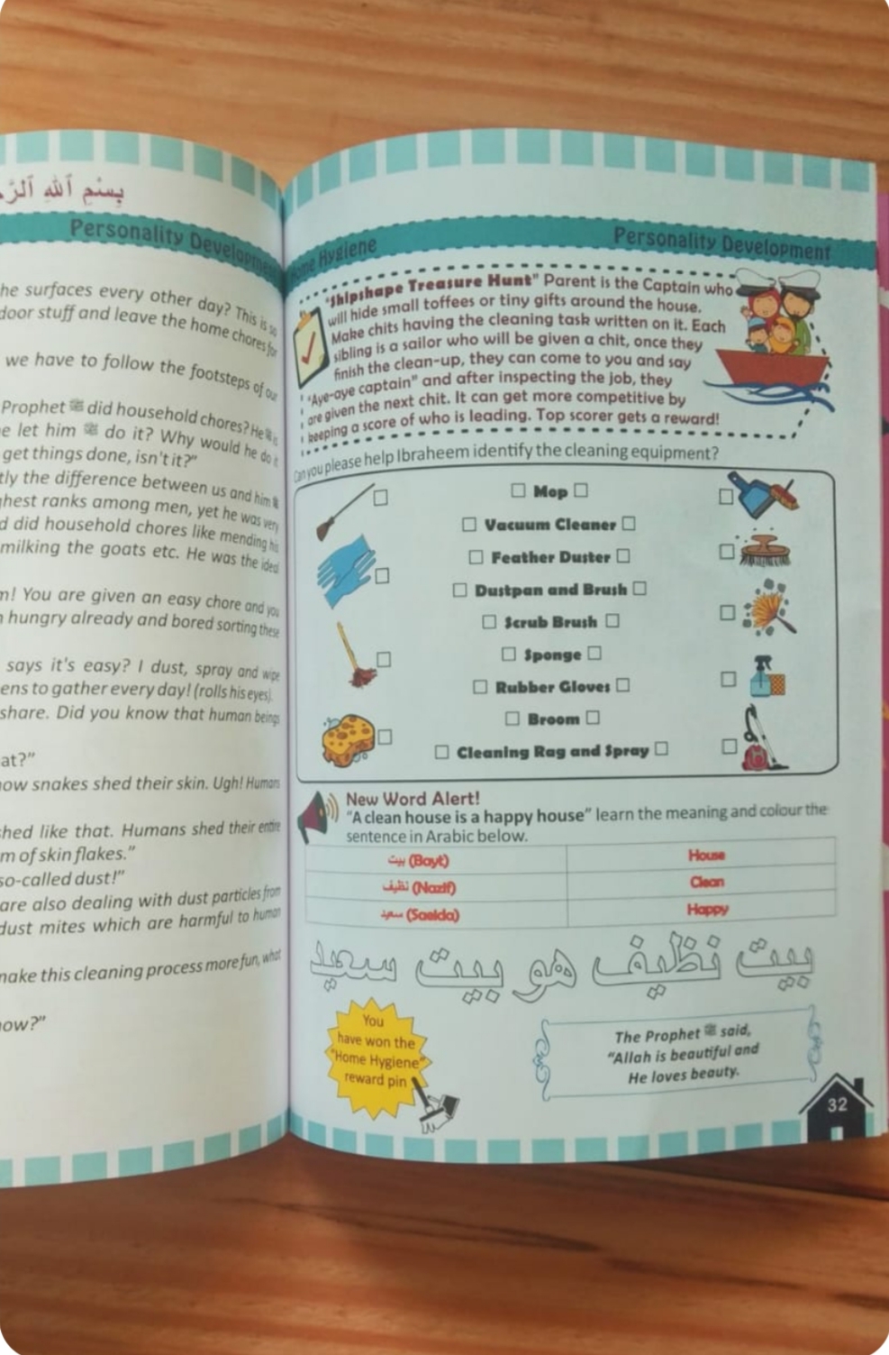 Join Fathima and Ibraheem in their learning journey as they explore over 65 new words ,over 35 fun activities,15 inspiring short stories,reward pins,reminders and much more. Wonderful gift and foundation for little ones to help them build strong Islamic values and developed a confident personality based on Quran and hadith. Also ideal for home school moms and Islamic scholastic curriculum