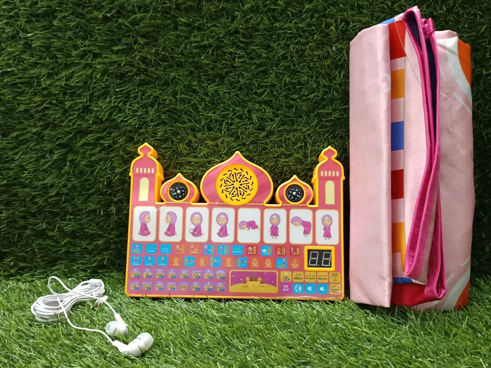 Interactive Salah Mat, Make learning Salah fun, interactive, and engaging for your child with the Interactive Fun Sajadah – Electronic Salah Mat with Audio Guidance. This innovative Islamic educational toy helps kids learn, understand, and practice Salah in an enjoyable way. Designed for beginners and young learners, this smart electronic prayer mat features touch-sensitive buttons that provide step-by-step guidance through all prayer positions – from Qiyam (standing) to Sujood (prostration).