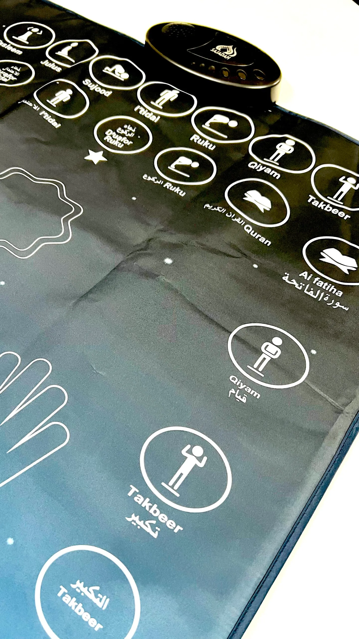 Interactive Smart Salah Mat and transform your prayer experience with this cutting-edge and educational electric Janamaz. Designed for reverts, teenagers, and adults, this innovative prayer mat simplifies learning and performing Salah in a guided, interactive way, Insha’Allah.