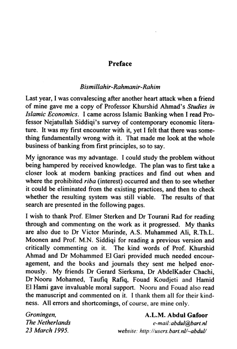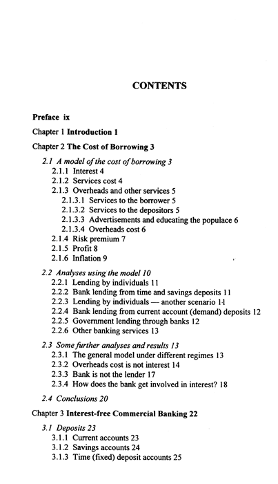 Studies the problem of eliminating interest from the banking system from basic principles. Using a general model of the commercial bank lending process, show that interest can be eliminated from modern a commercial banking without resort to drastic measures. Present a commercial banking system that is free of interest but is fully viable and compatible with current practices In the conventional system.