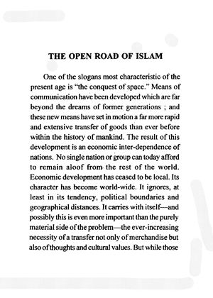 This little book is a humble contribution towards the great goal. It does not pretend to be a dispassionate survey of affairs : it is the statement of a case, as I see it : the case of Islam versus Western civilization. And it is not written for those with whom Islam is only one of the many, more or less useful, aCCessories to social life, but rather for those in whose hearts still lives a spark of the flame which burned in the Companions of the Prophet the flame that once Made Islam great as a social order and a cultural achievement. (Muhammad Asad, Delhi, March, 1934 )
