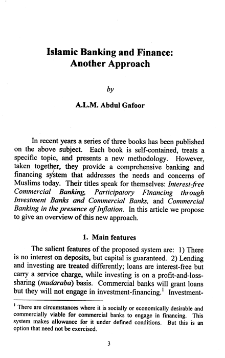 The Author Name(s) of this booklet is also the Author Name(s) of the three titles given below. Each of them is self contained, treats a specific topic, and provides a new methodology. The present work describes how the three books, taken together, offer a comprehensive banking and financing system that addresses the needs and concerns of Muslims today. Each book provides one or more independent modules of the system, and each module can be implemented alone or in combination with others depending on the circumstances and time frame. Many of the modules are of general applicability – being Muslim is not a prerequisite. Some modules contain several options to address different field conditions. Consequently, the system spans so wide a spectrum of circumstances that practically every country and every community can find a combination that will suit its particular requirements.