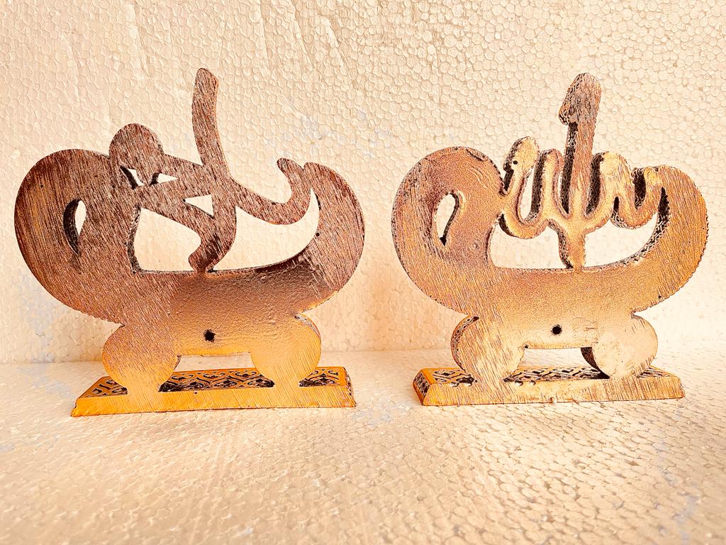 Islamic Table Decor Set – Allah and Muhammad Sculptures with Arabic Calligraphy