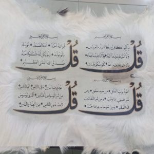 Elevate your home decor with this premium Islamic wall fabric featuring intricate embroidery of the Four Quls and Ayatul Kursi on black cloth. Create your own spiritual wall art. Order now for an elegant touch to your living space.