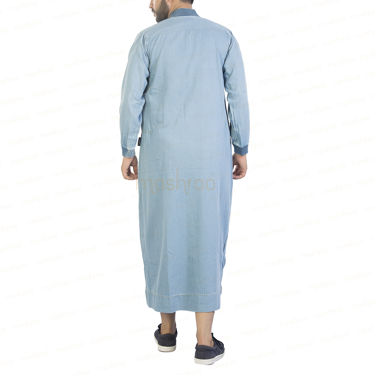 We have all the good reasons to name it snazzy. made using 100% washed denim fabric, this thobe comes drenched in sky blue color. However the most intriguing and appealing aspect of this is the side zip, which can be opened for added comfort. Especially while you are riding a bike. You read that right. Isn’t that cool.