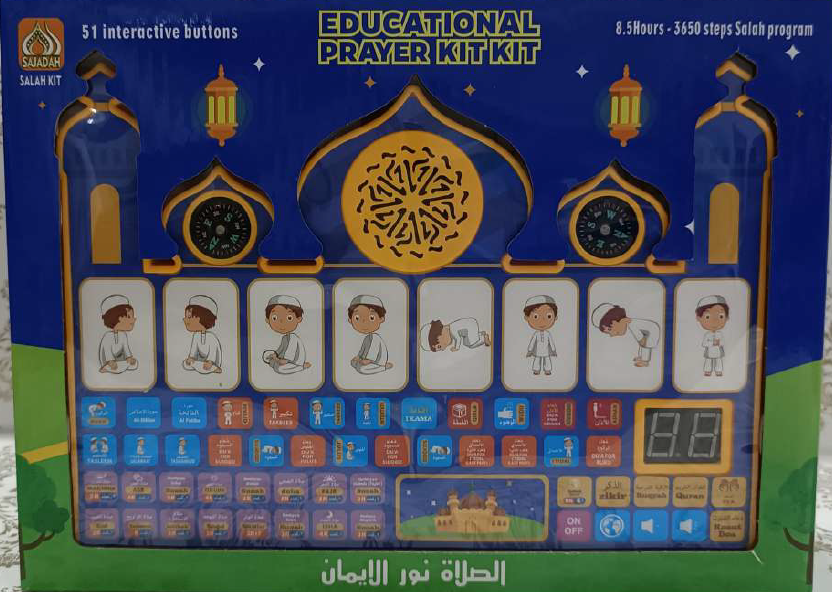 This multifunctional prayer machine is ideal for teaching Salah (Namaz) steps, Surahs, and Islamic phrases in a fun and interactive way.
