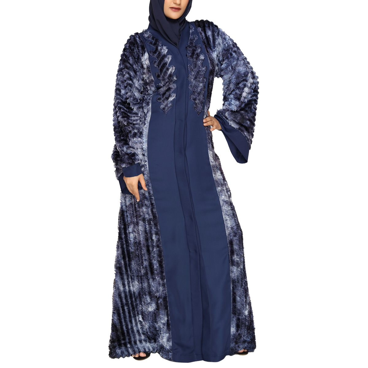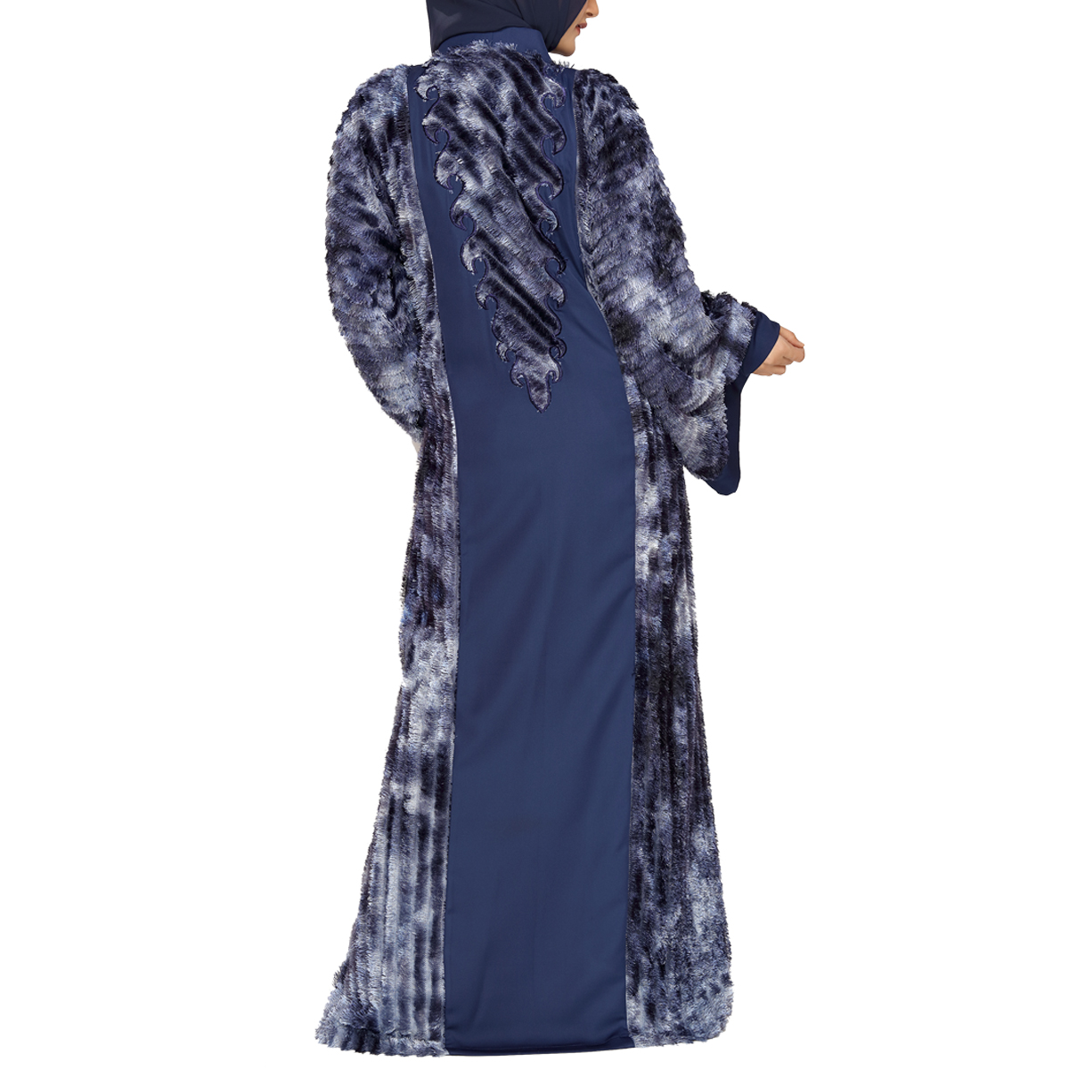 NAVY BLUE DUAL FAUX FUR ABAYA