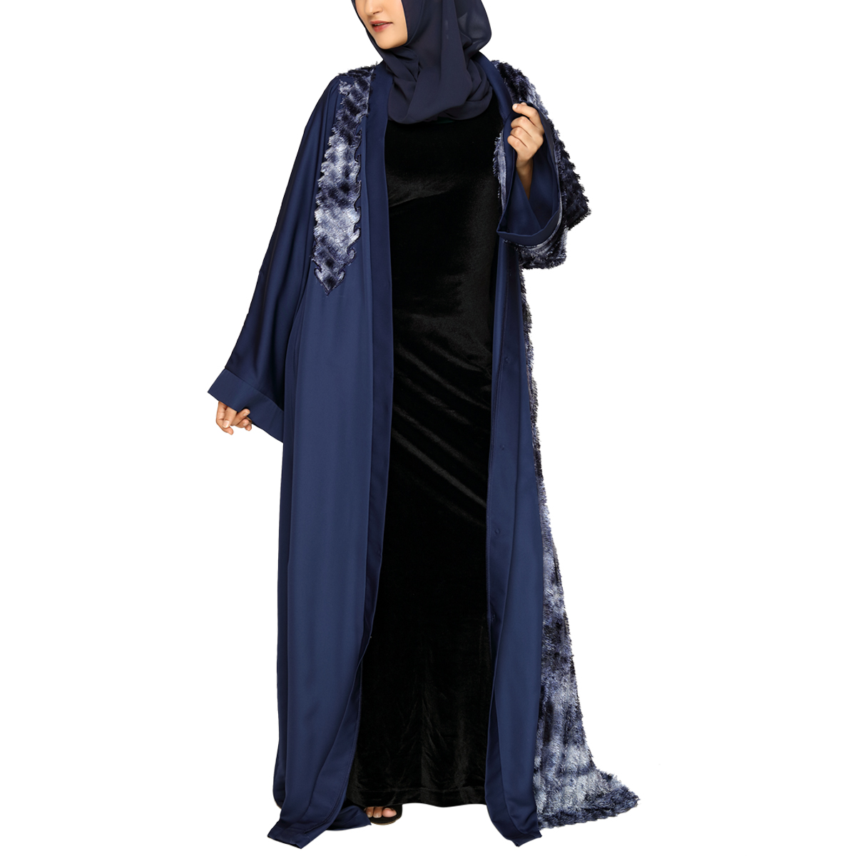 It’s name describes it the best! It’s Blue and It’s Royal. You just cannot resist owning this stylish Abaya having centrally aligned buttons and the feel of mink feathers on the left side made up of soft and luxurious PREMIUM NIDA FABRIC.