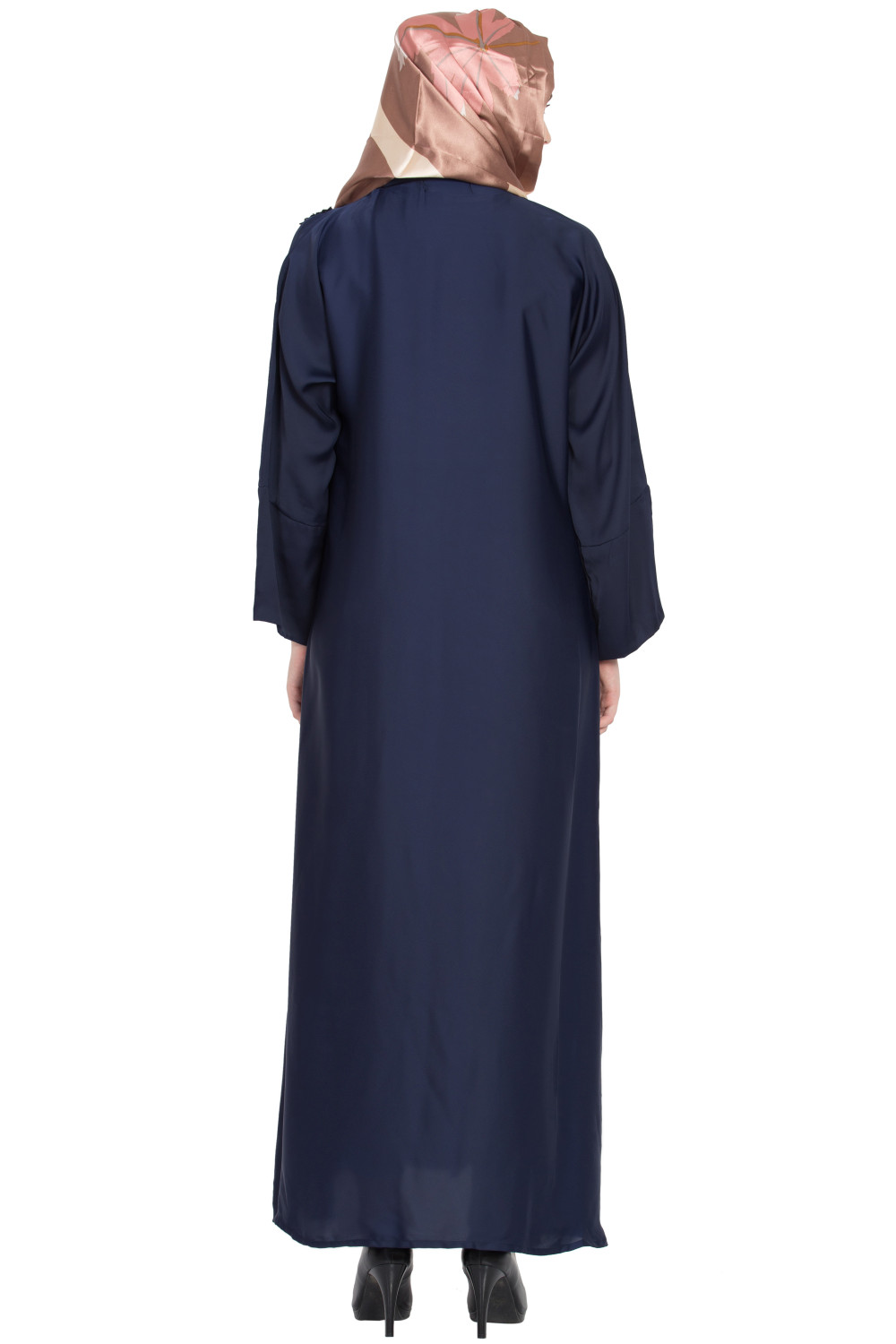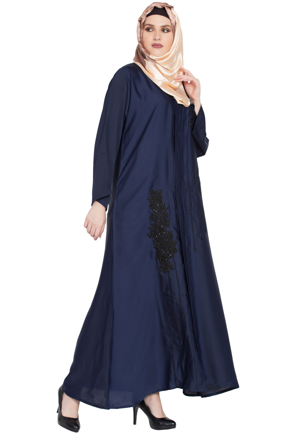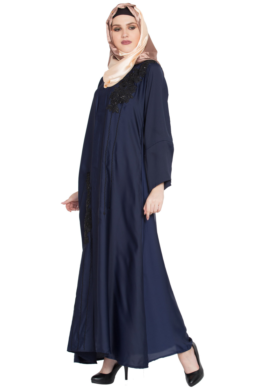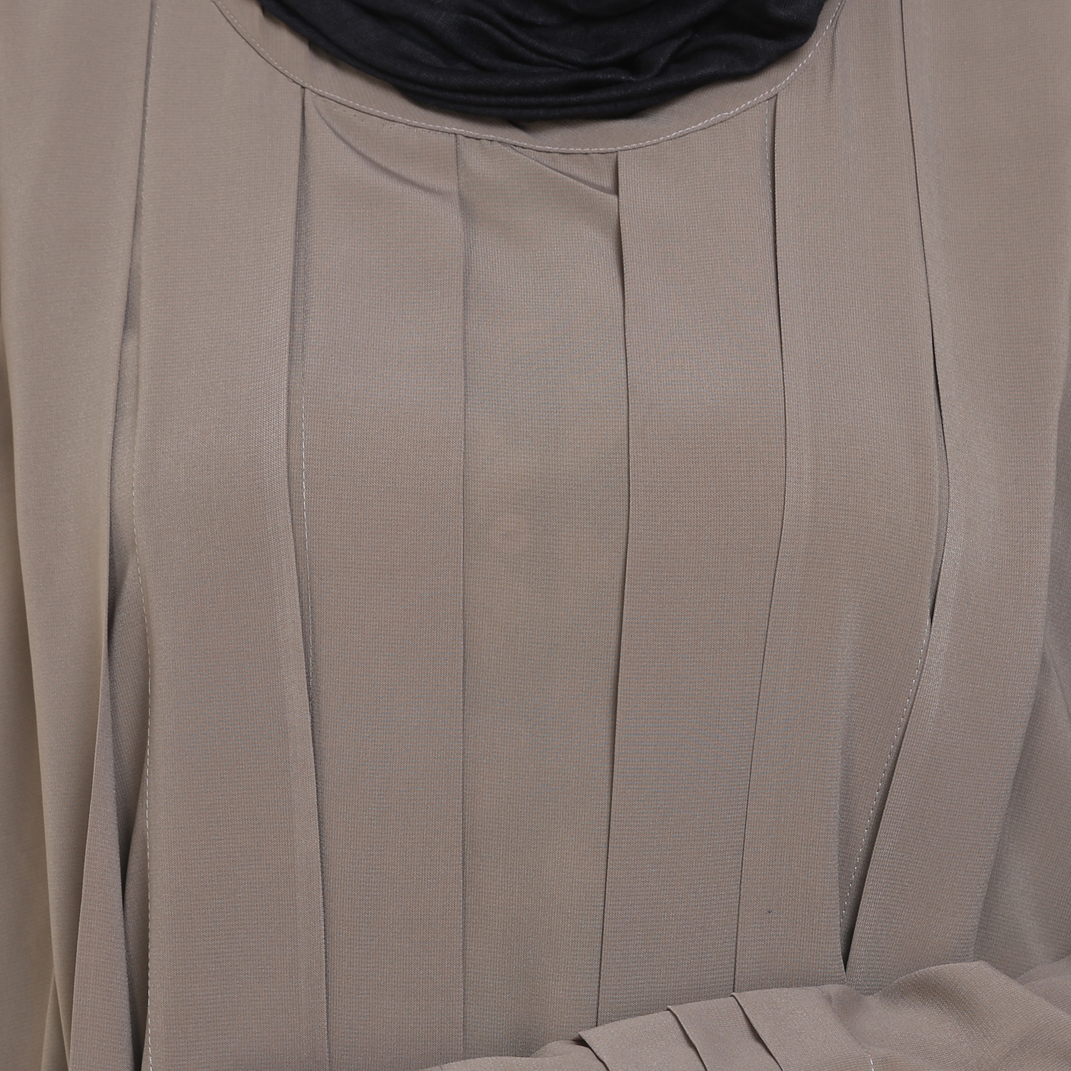 This is an Umbrella style Abaya designed to deliver maximum flare and movement. It features a kali pattern with three panels at the front and three at the back, strategically placed to create volume while keeping the overall shape refined. The result is a dramatic, sweeping flare that echoes the elegance of a gown—perfect for special occasions yet simple enough for everyday sophistication.