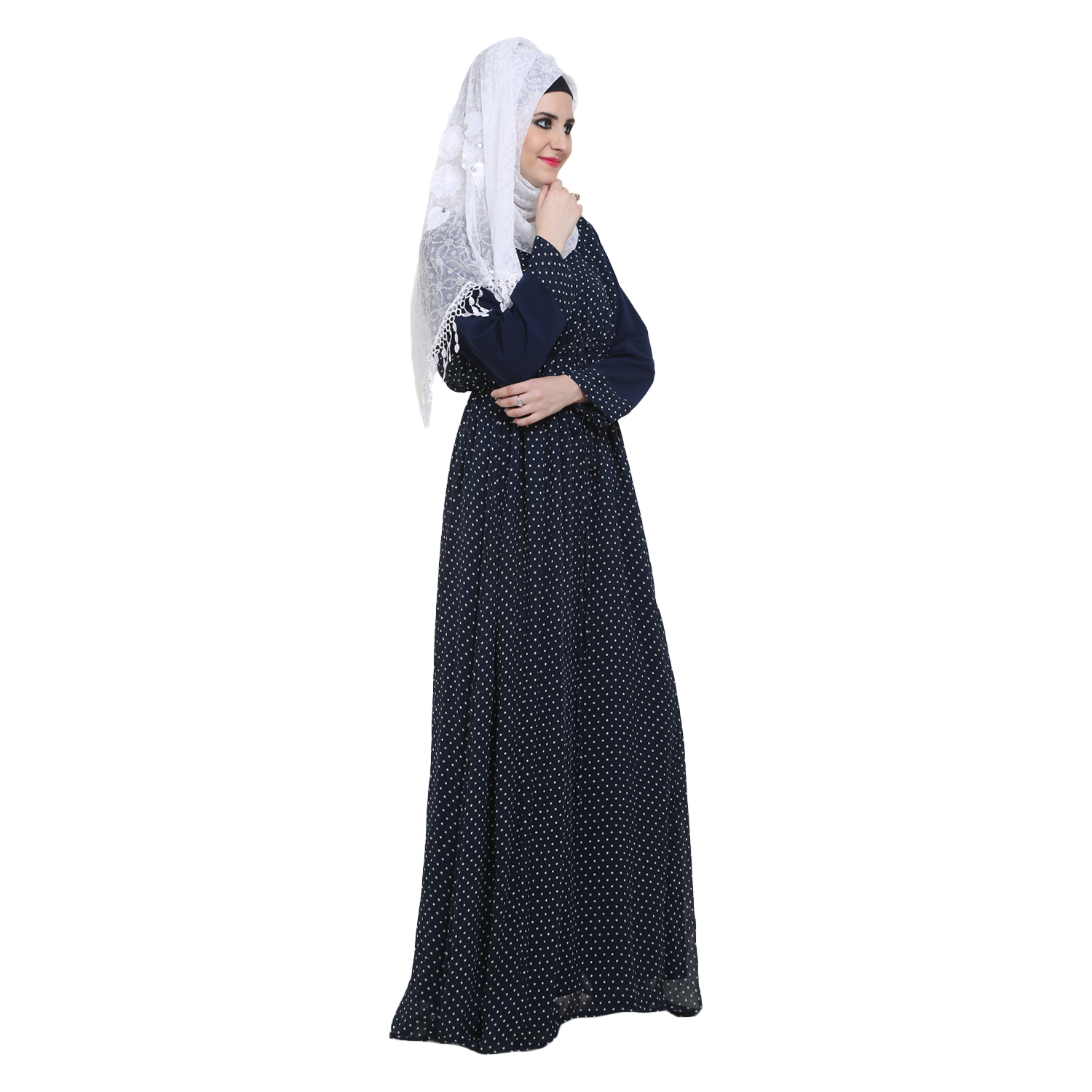 Abaya Dress: Stunning Navy Polka Dot, Best Double-Layer