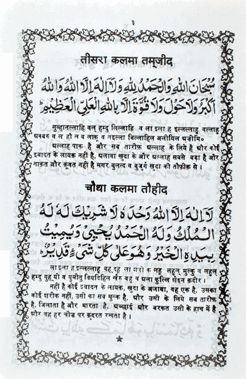 - Two sections—Mufassilaat (duas, hadiths, lectures on namaz) and Imaan Naama (basic Islamic beliefs).