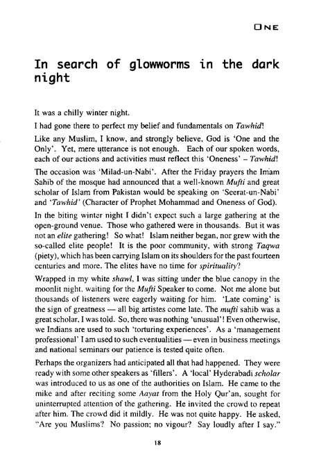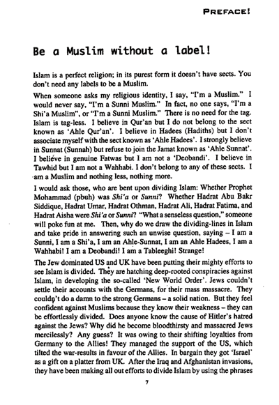 Every messenger of Allah brought the common message, the oneness of God (Tawheed). The Holy Quran says Say, He Allah is One. Alah is Independent (He needs no one and nothing, but every one and everything needs Him). He has no children and is not any one’s child. There is none equal to Him (neither in His Being nor in His qualities). The purpose of this book is to bring the humanity together by explaining and clarifying the meanings of Imaan and Tawheed, which is the key to Jannah, the paradise. Because, Allah S.W.T. forgives any of the sins except Shirk (to attributing an equal partner unto Allāh, or associating anyone or anything with Him).