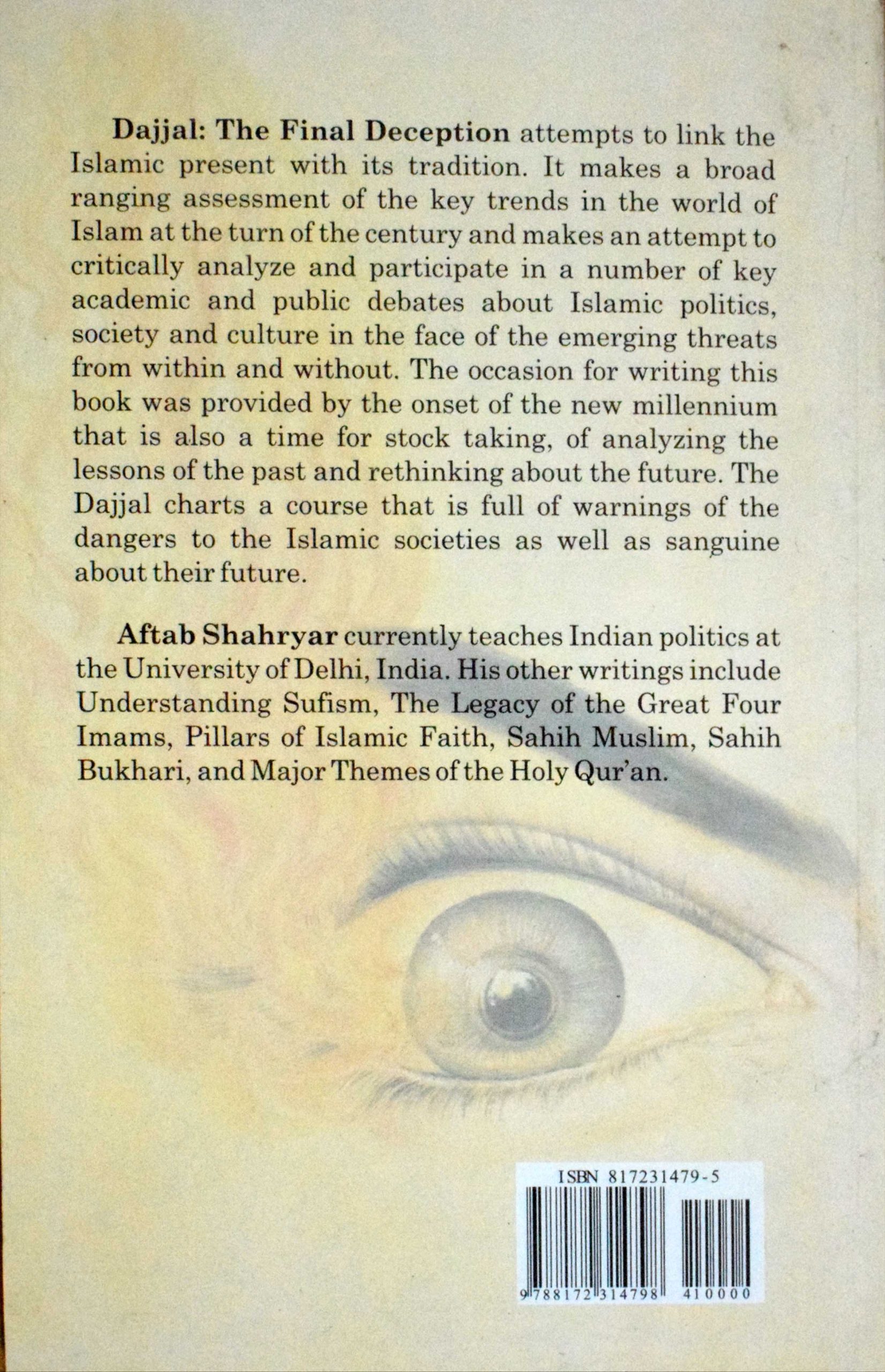 Dajjal: The Final Deception attempts to link the Islamic present with its tradition. It makes a broad ranging assessment of the key trends in the World of Islam at the turn of the century and makes an attempt to critically analyze and participate in a number of key academic and public debates about Islamic politics, society and culture in the face of the emerging threats from within and without. The oCCasion for writing this book was provided by the onset of the new millennium that is also a time for stock taking, of analyzing the lessons of the past and rethinking about the future. The Dajjal charts a course that is full of warnings of the dangers to the Islamic societies as well as sanguine about their future .Aftab Shahryar currently teaches Indian politics at the University of Delhi, India. His other writings include Understanding Sufism, The legacy of the Great Four Imams, Pillars of Islamic Faith, Sahih Muslim, Sahih Bukhari, and Major Themes of the Holy Quan.