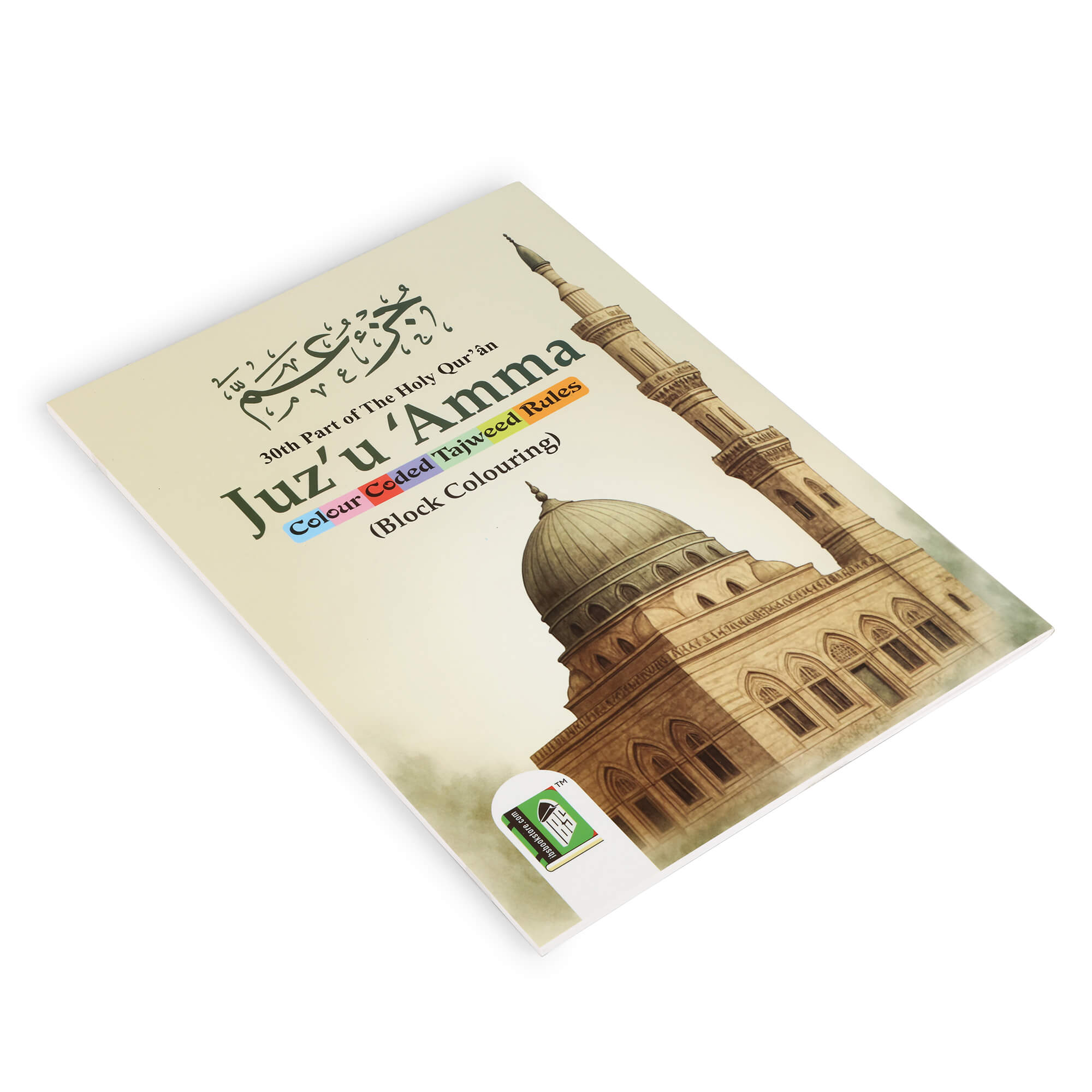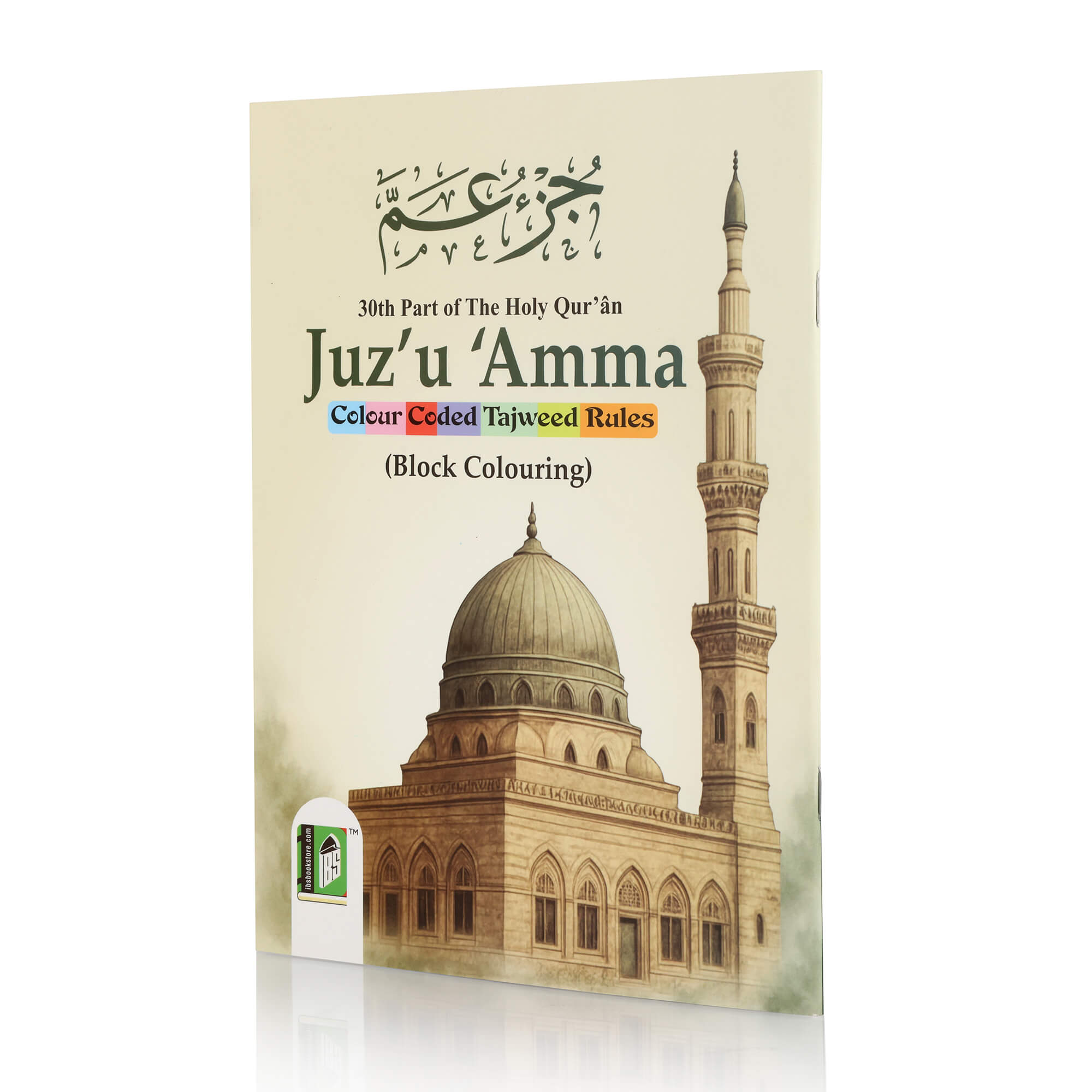 The Juzz Amma Block Colour Coded Tajweed Rules edition is specially designed to help learners recite the Holy Quran with correct pronunciation and proper Tajweed. This book uses a clear block colour coding system that highlights Tajweed rules directly within the Arabic text, making learning simple and effective for readers of all ages.