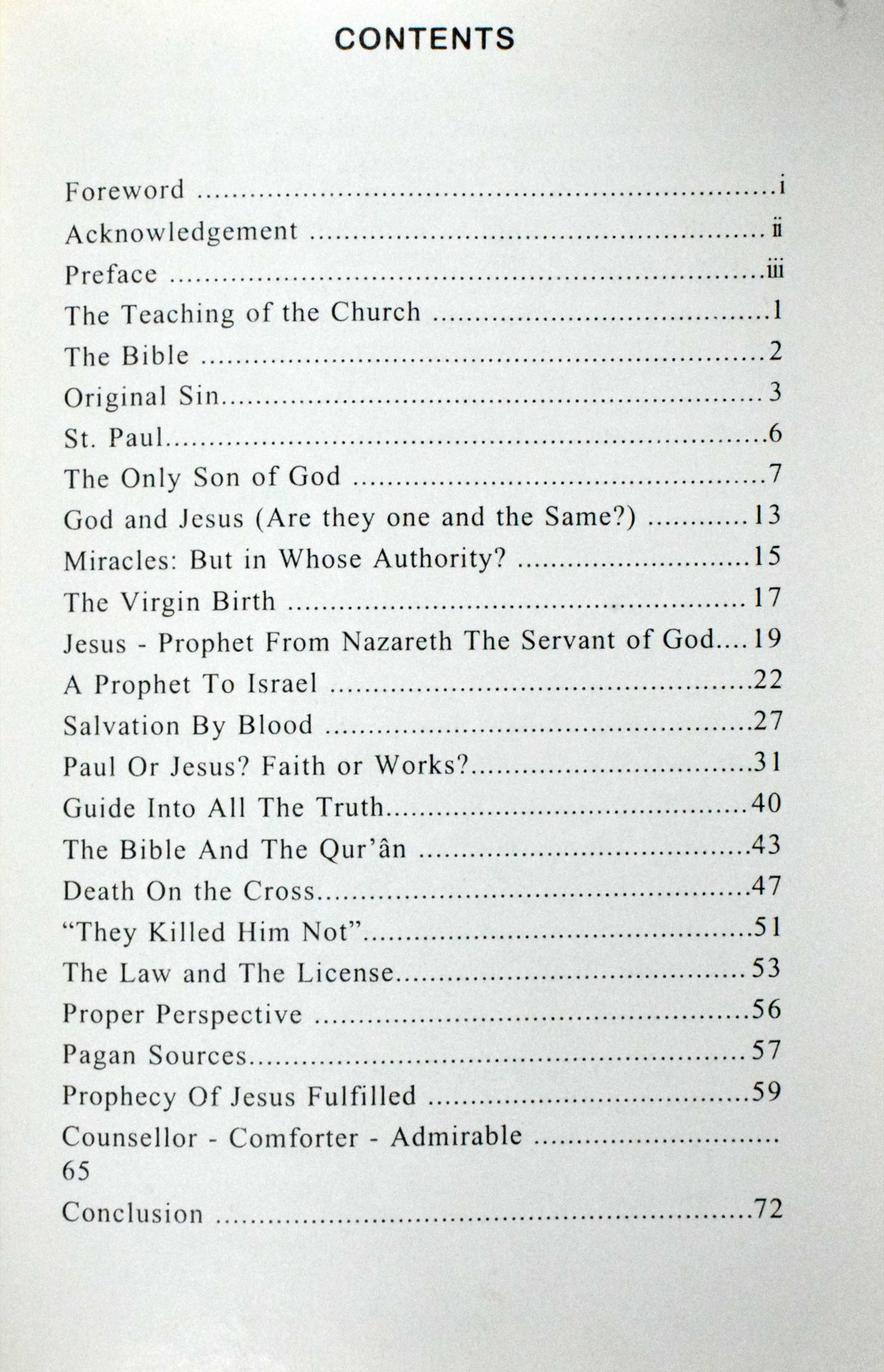 The writing and publication of this essay is not intended to be an exercise in polemics. Rather is it motivated by the desire to enlighten both Christians and Muslims who in many parts of the world have to live together as fellow countrymen and neighbours. Their enlightenment regarding the original fundamentals of each other’s faith would, it is hoped, make them appreciate the basic unity that binds them as adherents of the same original faith, the Universal Religion which teaches submission to the will of the one True God as the basis on which man’s moral behaviour is founded.