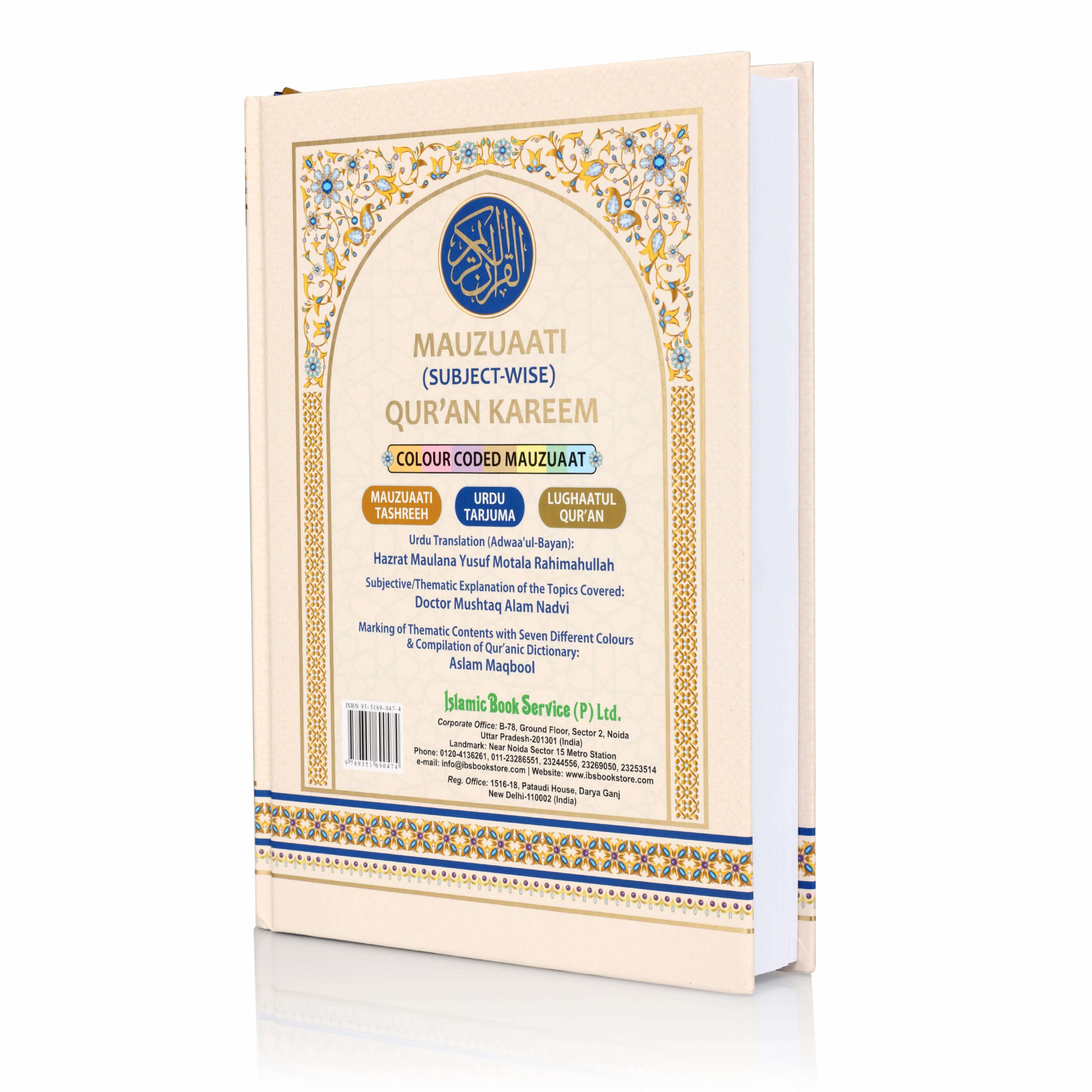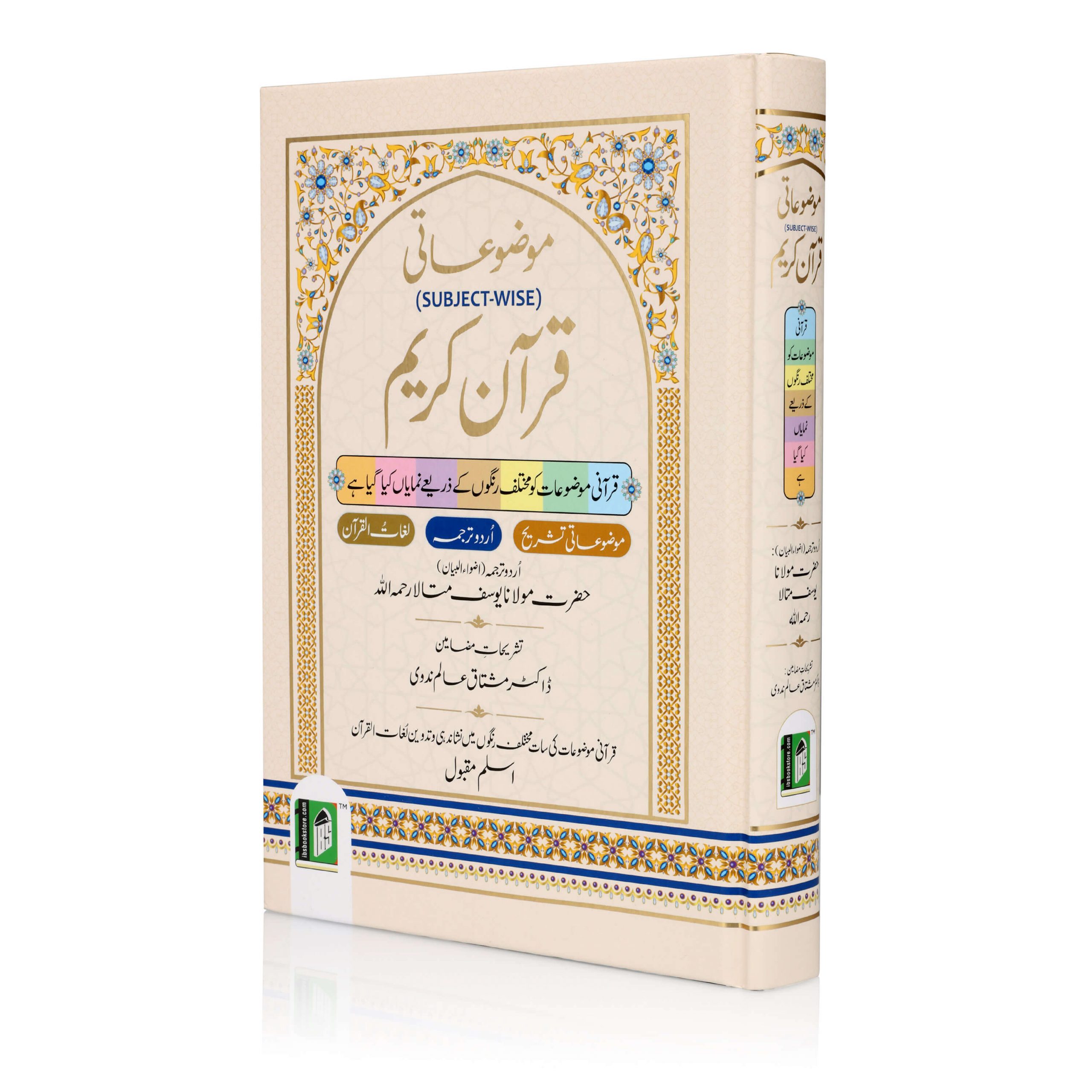 Mauzuaati Quran-e-Karim is a unique and highly beneficial Quran edition arranged subject-wise, making it easier for readers to study and understand Quranic guidance on specific topics. This edition presents the original Arabic Quranic verses along with clear Urdu explanations, helping readers explore the Quran in a structured and meaningful way.