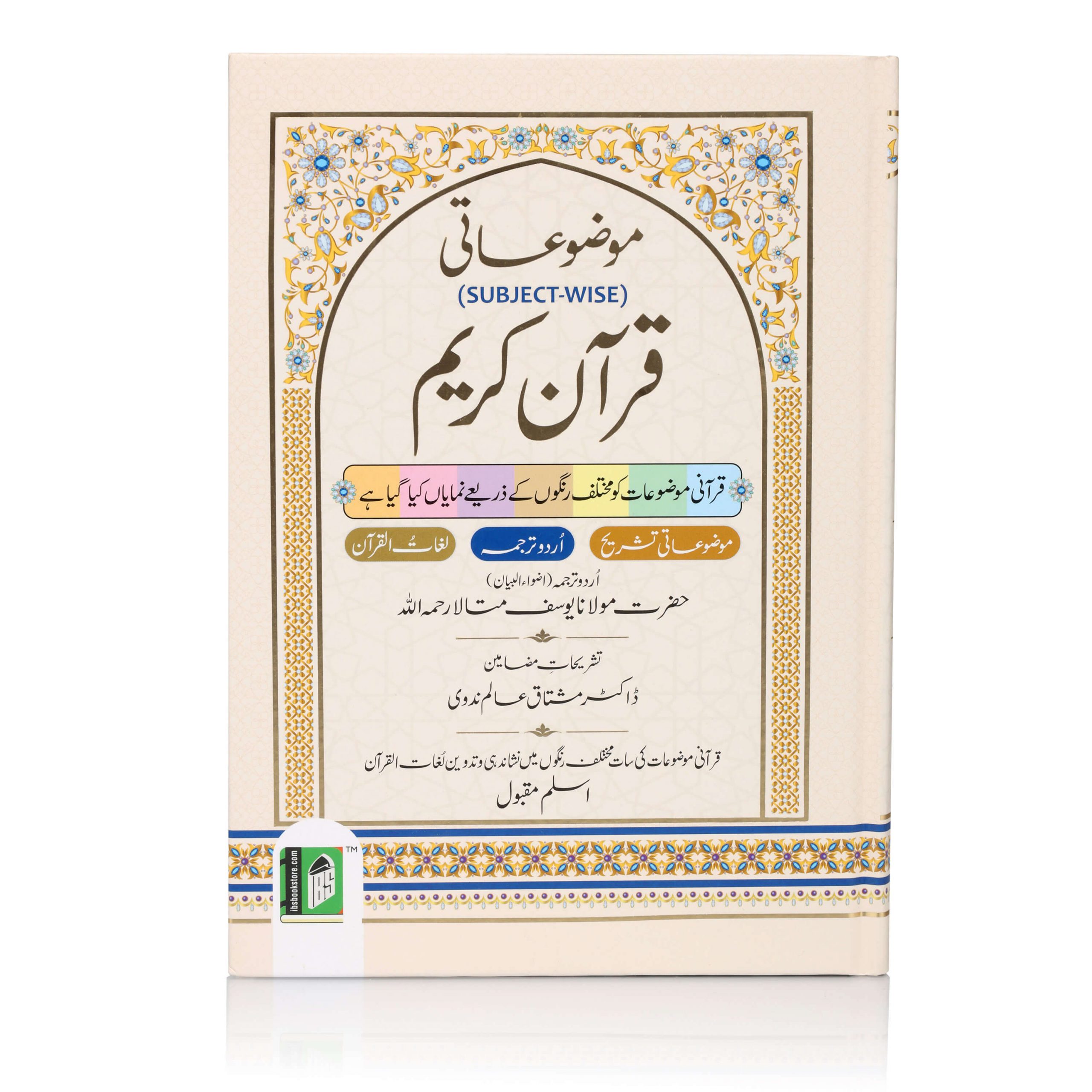 Mauzuaati Quran-e-Karim is a unique and highly beneficial Quran edition arranged subject-wise, making it easier for readers to study and understand Quranic guidance on specific topics. This edition presents the original Arabic Quranic verses along with clear Urdu explanations, helping readers explore the Quran in a structured and meaningful way.