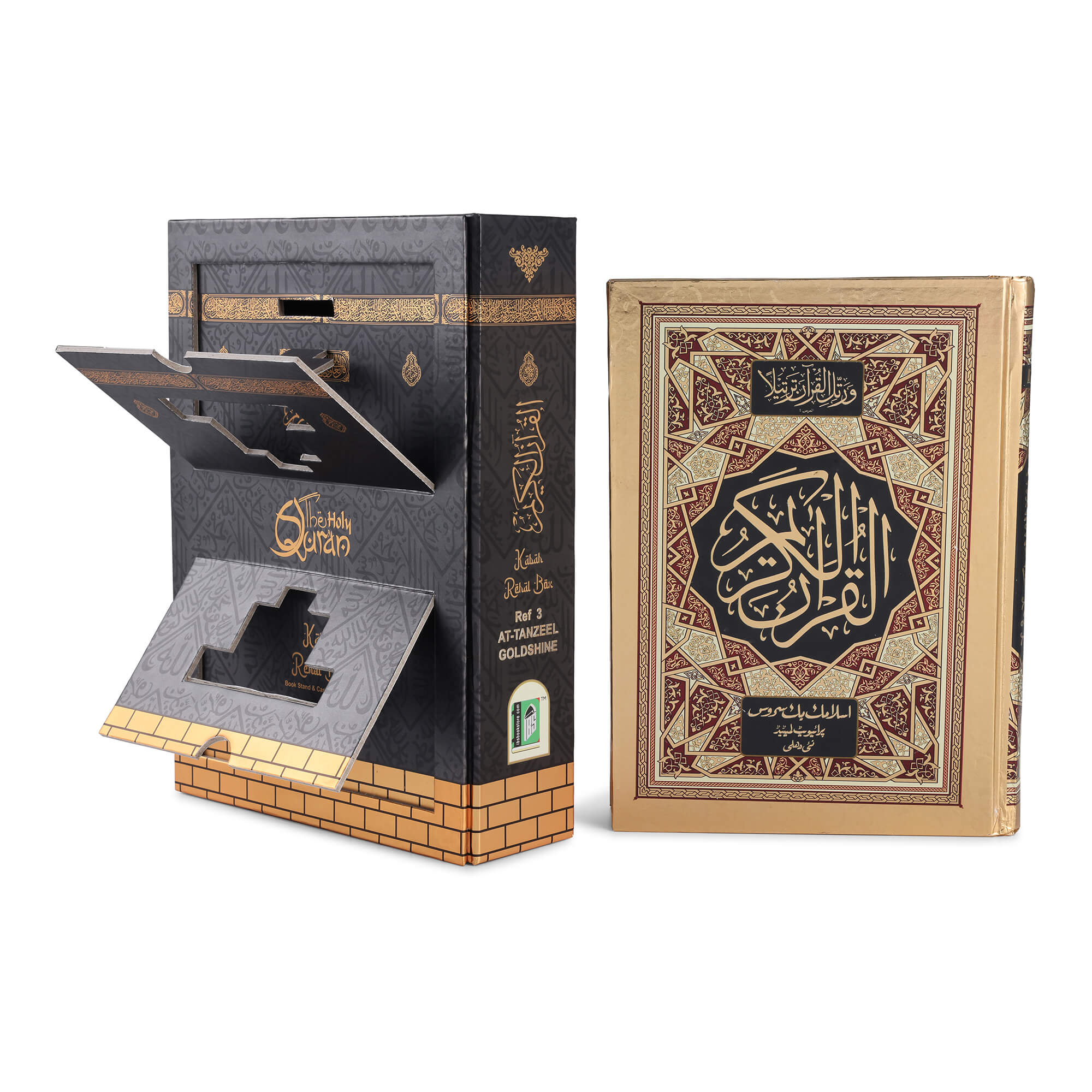- Premium Binding Choices with đź•‹ Kabah Rehal Box Option Elegant covers paired with a beautifully crafted Kabah-style Rehal box stand.
