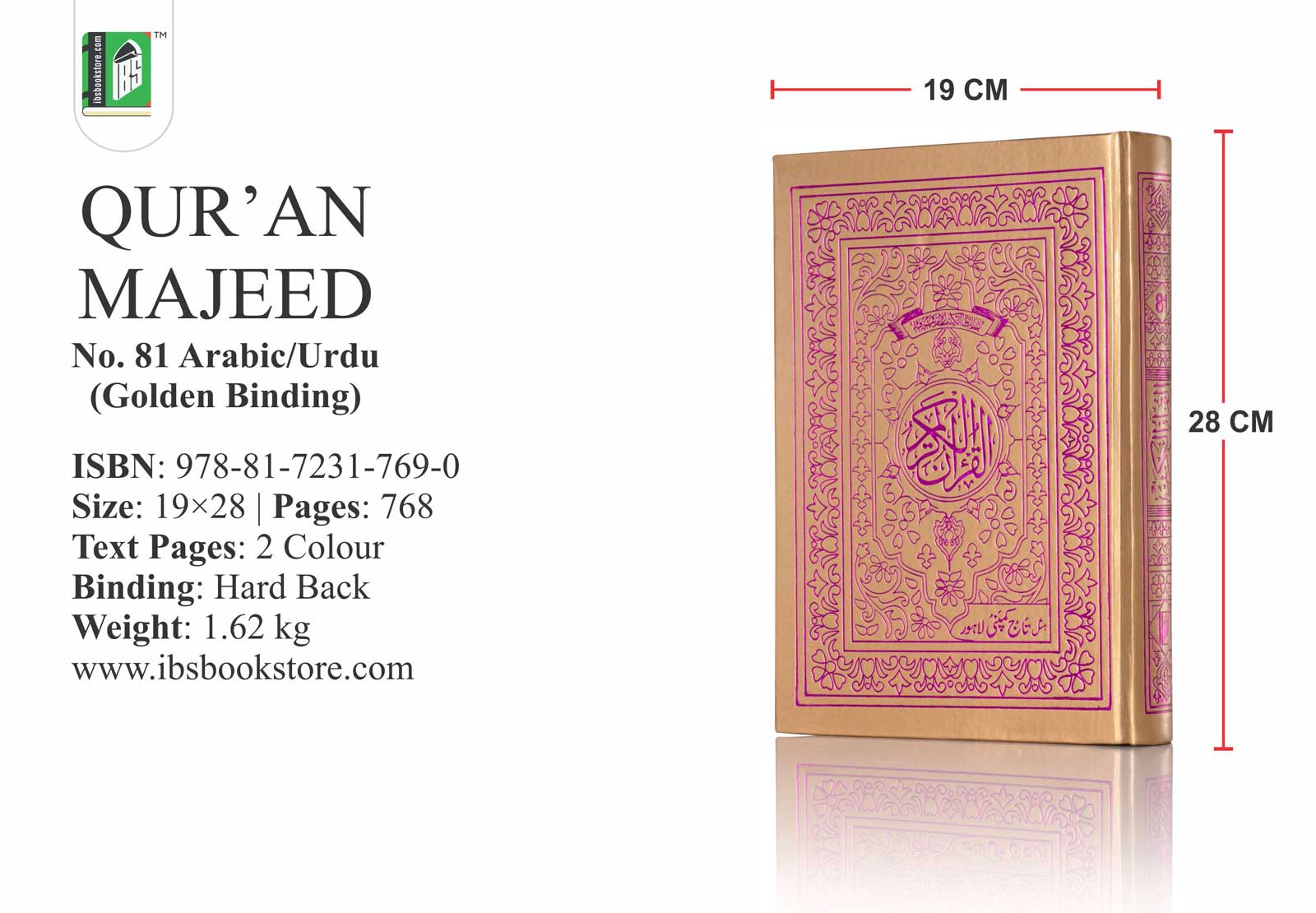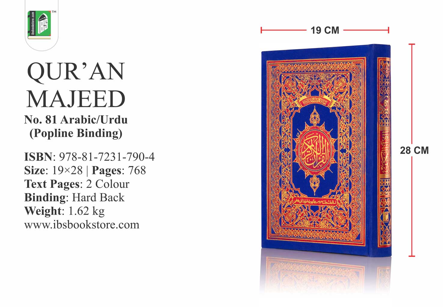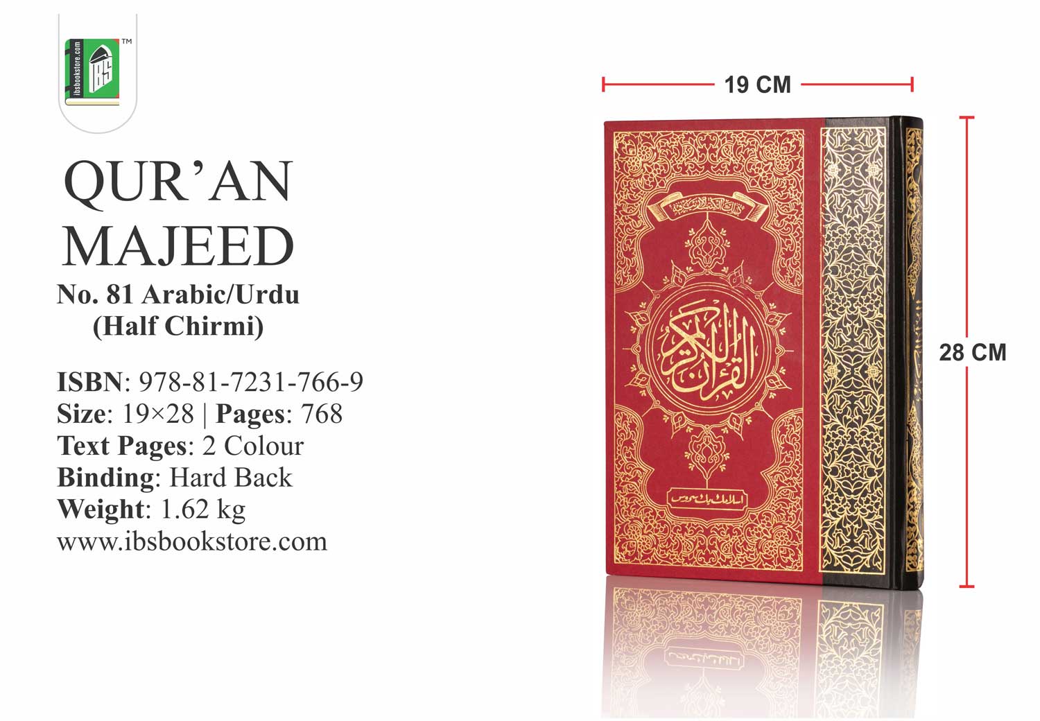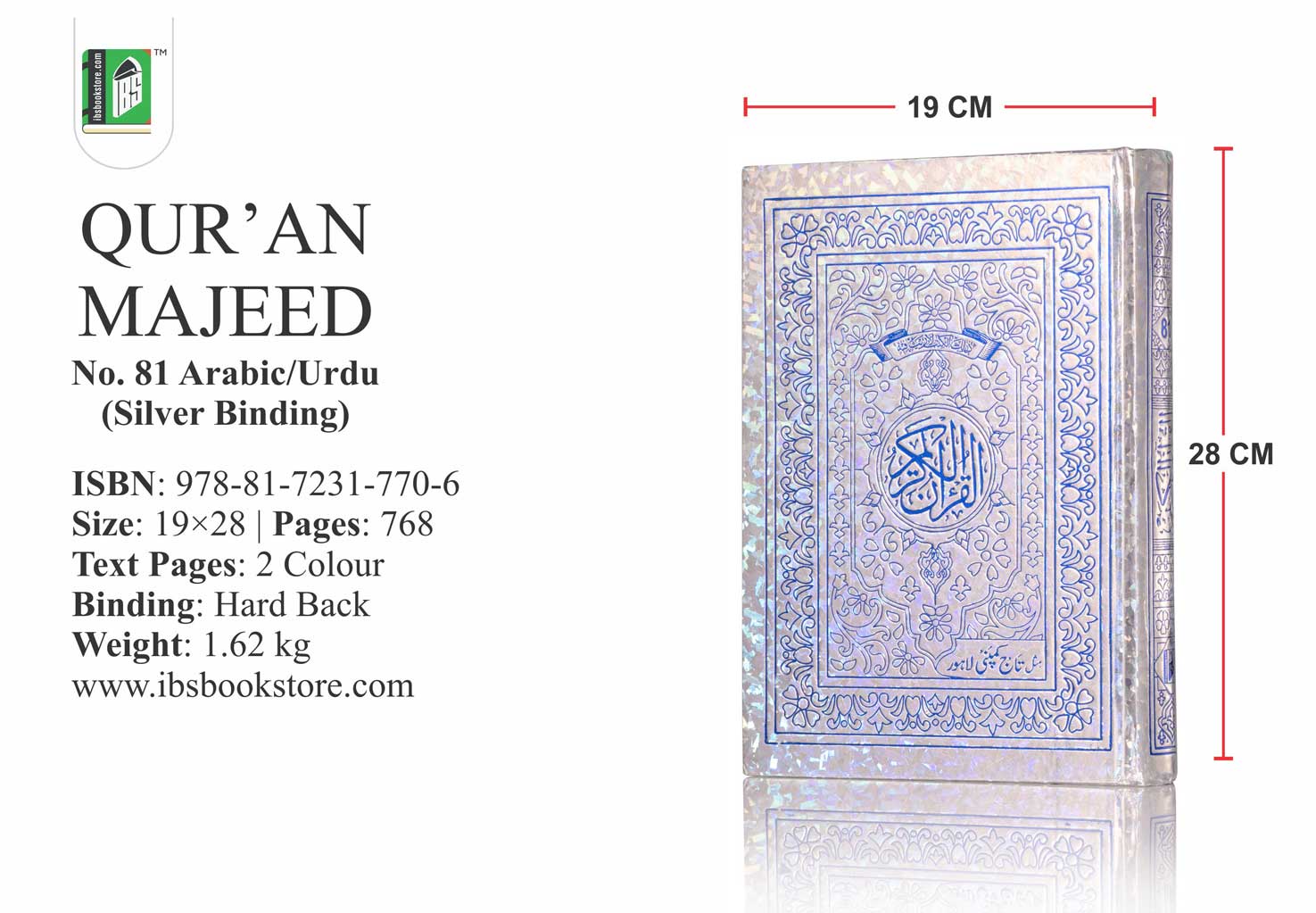 The Holy Book of Quran. Reference Number – 81. Available with Golden/Silver Binding. Print Type – 2 Color. Paperback. Readability – 15 lines.