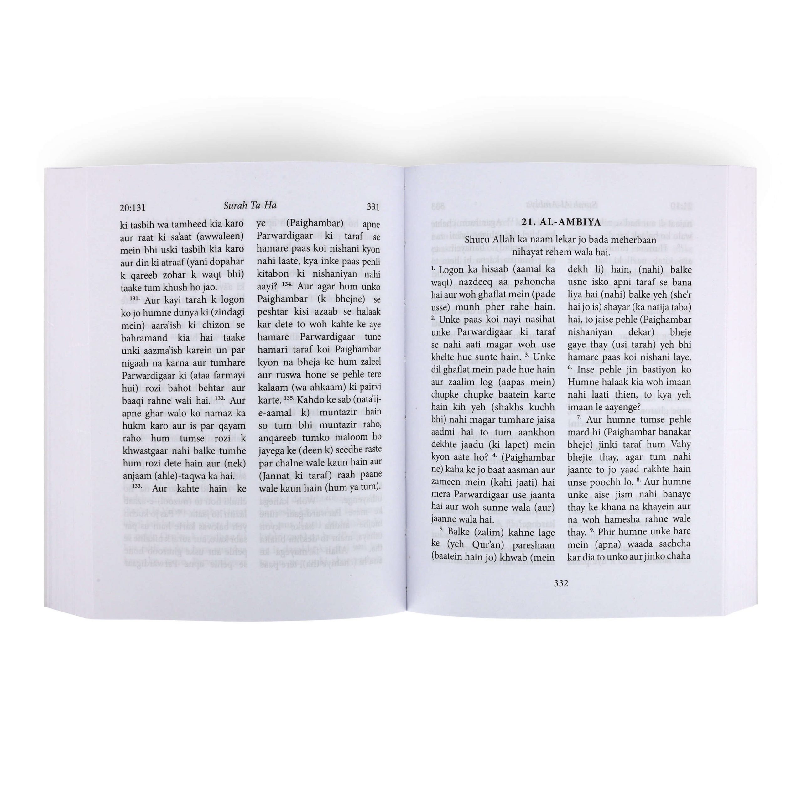 This Qura’n has Urdu Translation in Roman Script with English and Arabic text so the reader can easily understand the meaning.