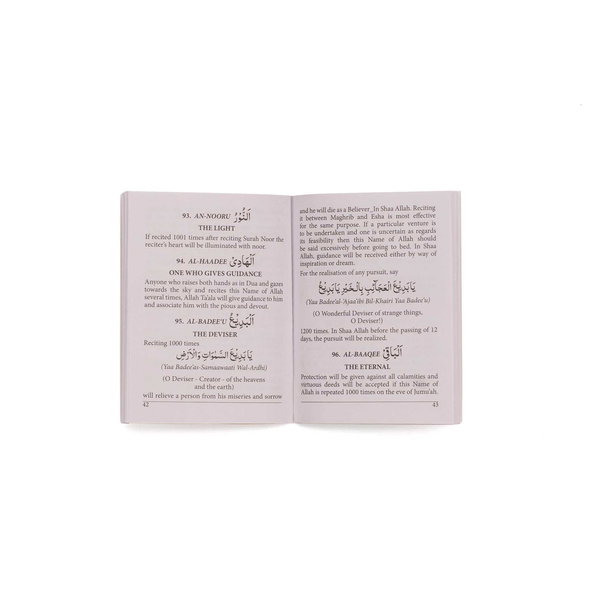 - Duas based on Allah’s 99 names and selected Surahs for problem-solving.