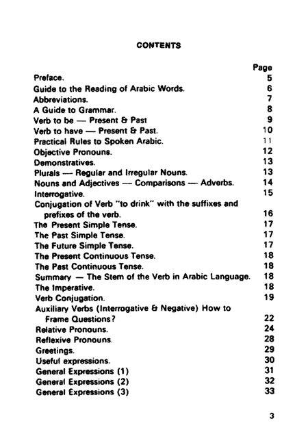 It is based on different -conversational subjects which are mainly intended to assist the reader to understand, step by step, the various forms of construction of phrases and sentences, e.g. what would you say in Arabic if you were going to invite some one? How would you say the time or ask someone to help you? And other practical expressions you would need in the market, at the hotel, at the butcher, etc.in your daily transactions. However, any lesson may be studied in any order you please, but it is necessary that knowledge of simple rules must firstly be mastered.