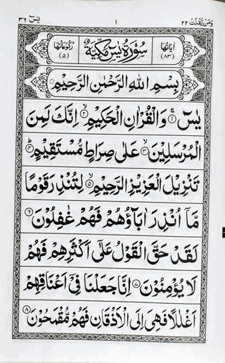 SURAH YASEEN REF NO. 94 [ 9 LINE ARABIC 1CLR PB MEDIUM SIZE