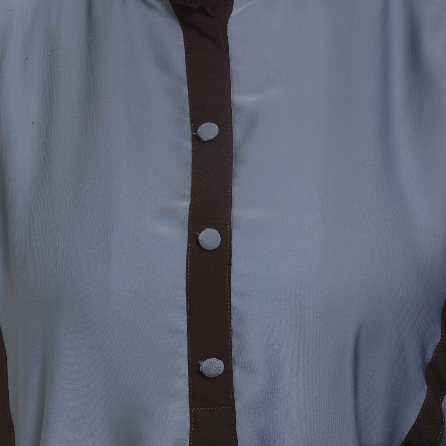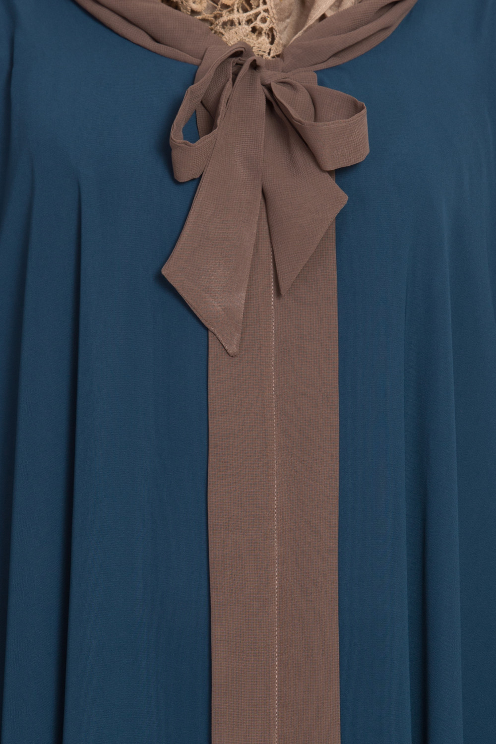 Designed with a loose, free-flowing kaftaan cut, this abaya brings ease of movement and all-day comfort. The silhouette gently skims the body, offering coverage without compromising on style. A contrast-colored tie at the neck adds a modern twist—wear it loosely for a relaxed vibe or neatly tied for a more polished look. The result is a piece that is modest, breathable, and effortlessly chic.