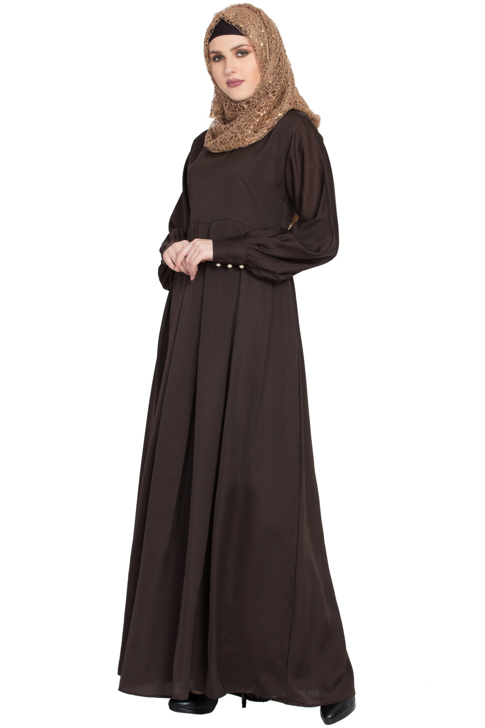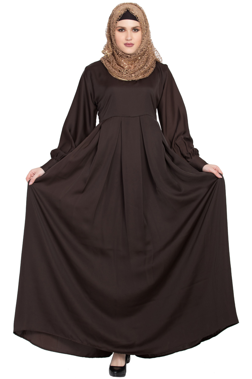 The Umbrella style Abaya is designed with a wide, sweeping flare that opens beautifully from the waist to the hem, creating a gown-like presence with every step. This generous silhouette moves fluidly, offering both comfort and coverage without compromising on elegance. It’s an ideal choice for those who appreciate modest fashion with a standout profile—perfect for photographs, formal gatherings, and casual days where you still want to feel polished.