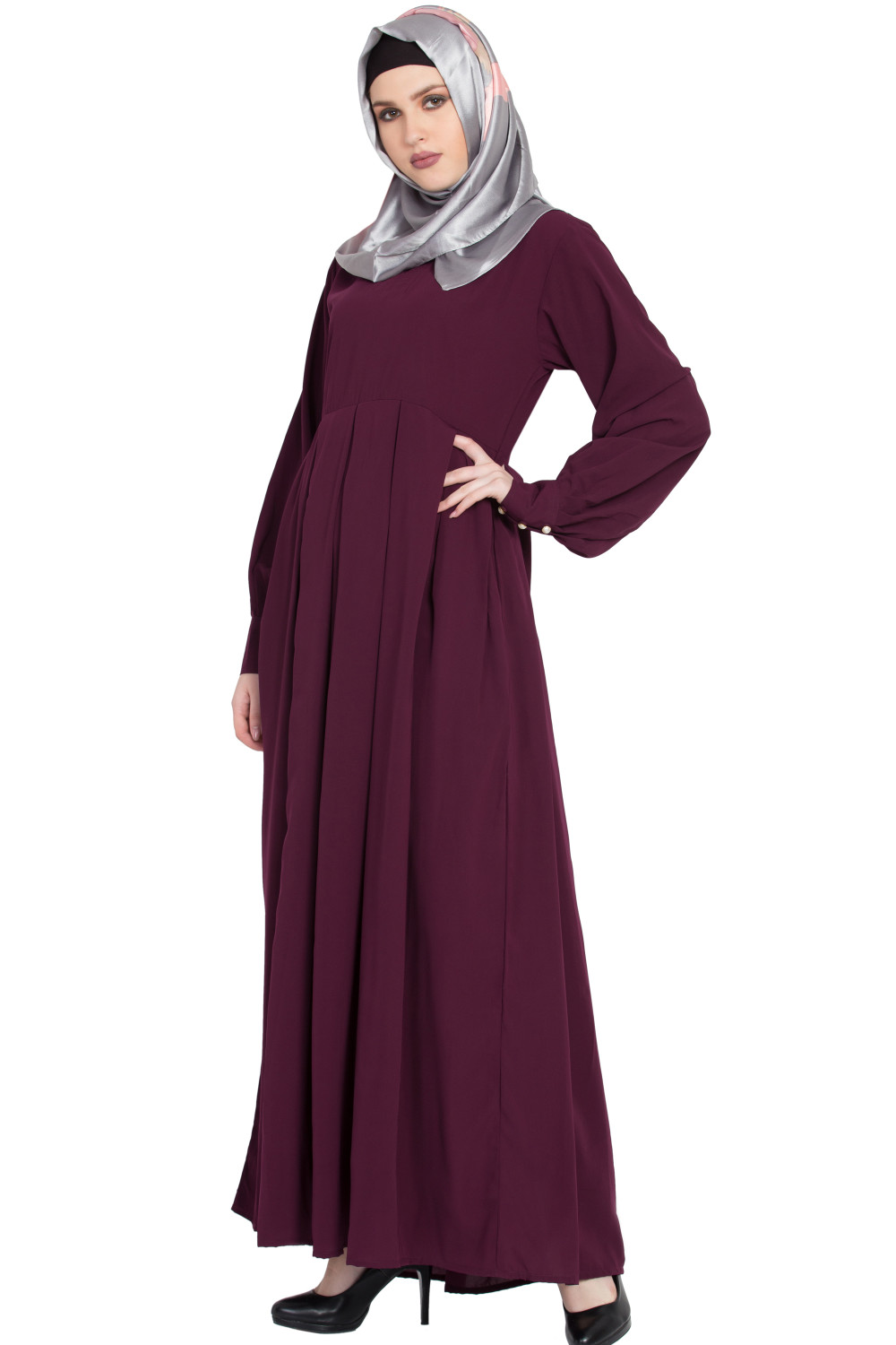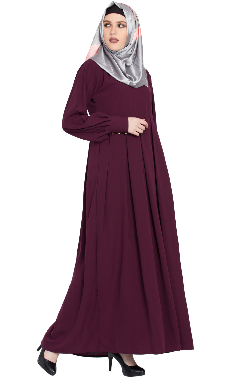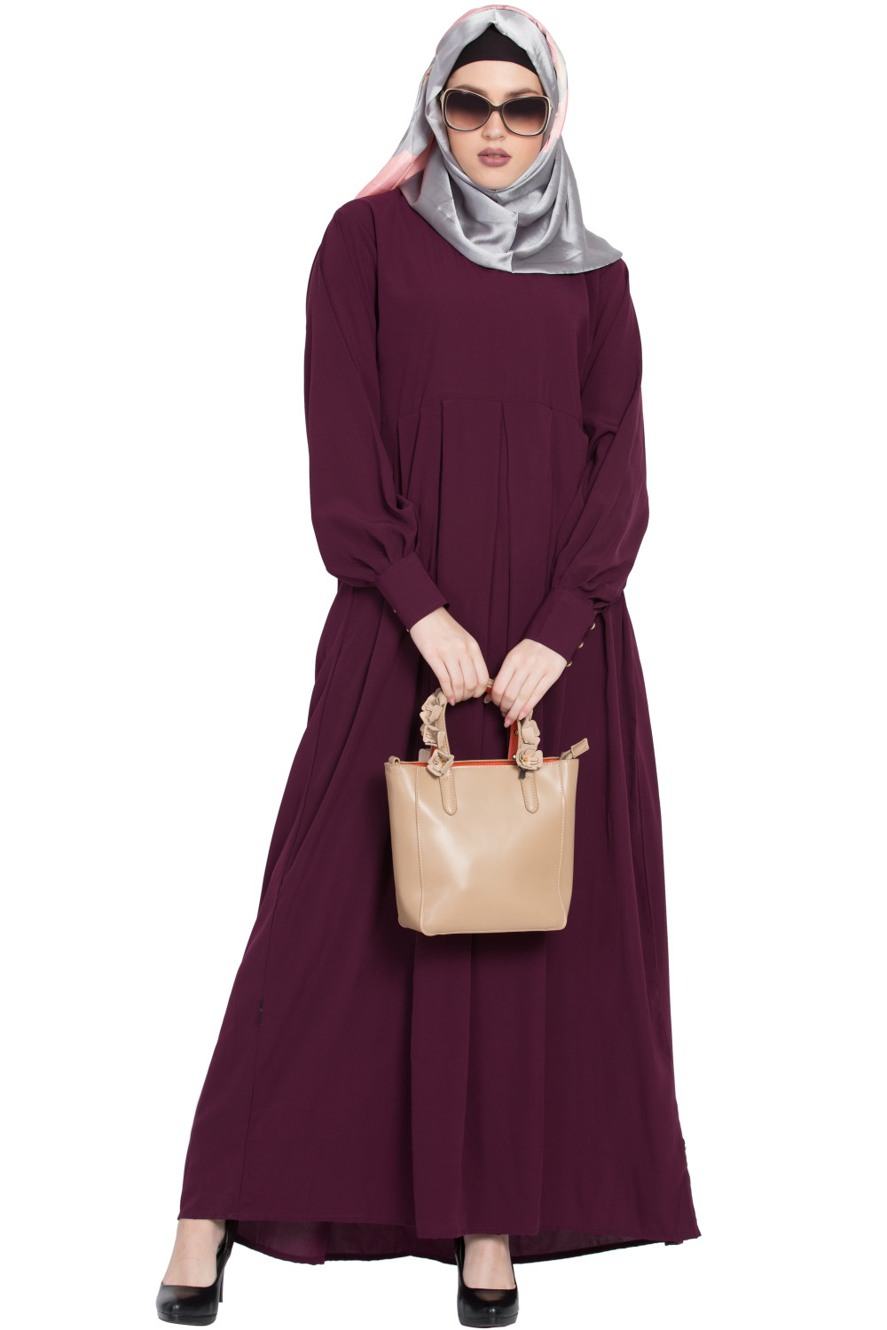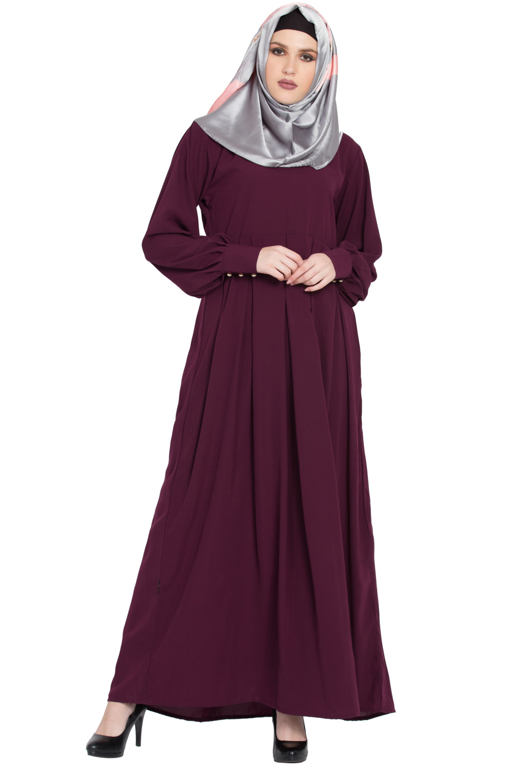 – Office polish: Layer the Shrugg Style Abaya over a neutral inner dress, add a slim belt under the shrugg layer, and finish with pointed-toe heels.