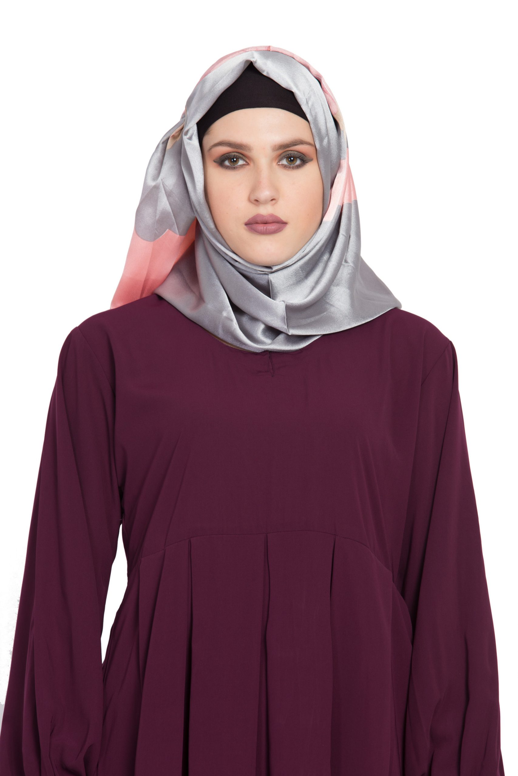 This is not your ordinary abaya. The unique tailored construction features a double-layered front, creating a modern shrugg effect that adds dimension and movement. A contrasting inner layer peeks through with subtle elegance, offering a touch of color that feels both sophisticated and on-trend. The layers are carefully cut to create a smooth silhouette, while the open-front styling lends itself to easy layering and personalized coverage. Every detail is considered to ensure comfort, modesty, and effortless wear.