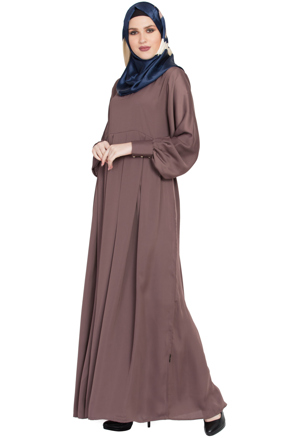 The fabric defines the flow, feel, and durability of an abaya, and premium Nida is renowned for all three. Imported and meticulously woven, it has a rich hand feel with a smooth yet substantial texture. The material is fully opaque, so you can move with confidence without extra layering. It glides over the body with a beautiful fall, creating a graceful silhouette whether you’re walking into a formal event or hosting at home. Breathable yet structured, premium Nida maintains its shape throughout the day while staying soft against the skin.