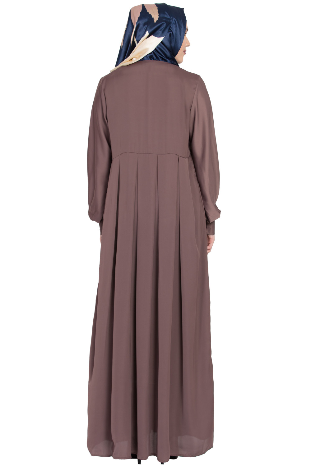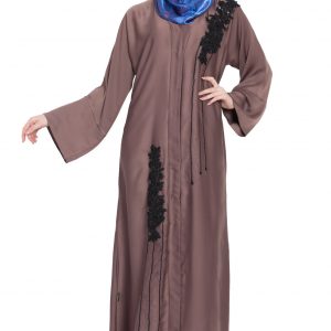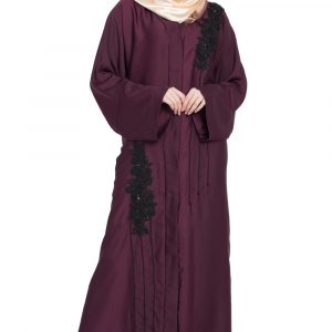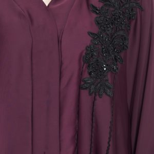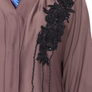 The attention to detail is evident in the careful placement of the floral and pearl embellishments. The neckline is tastefully adorned to frame the face without bulk, and the patterning around the body provides a cohesive, polished finish. Seams are clean, and the drape is balanced, so the abaya looks as beautiful in motion as it does in photos.