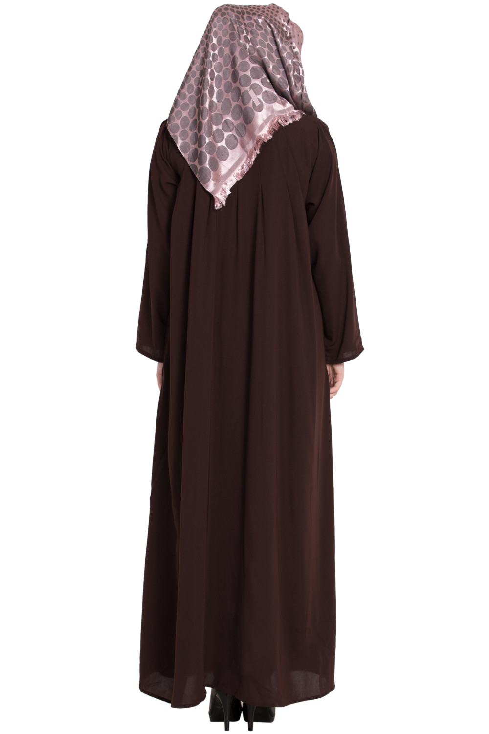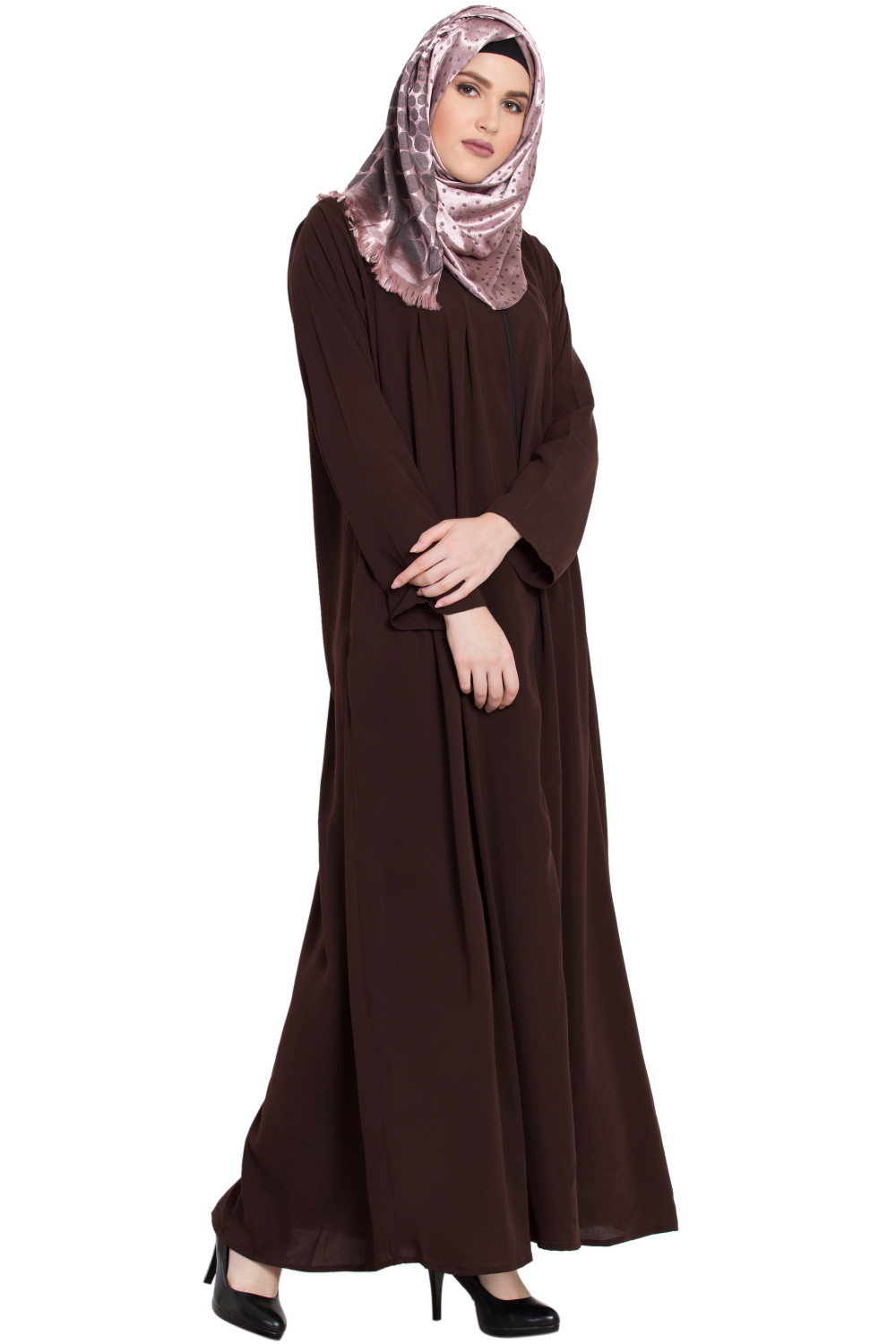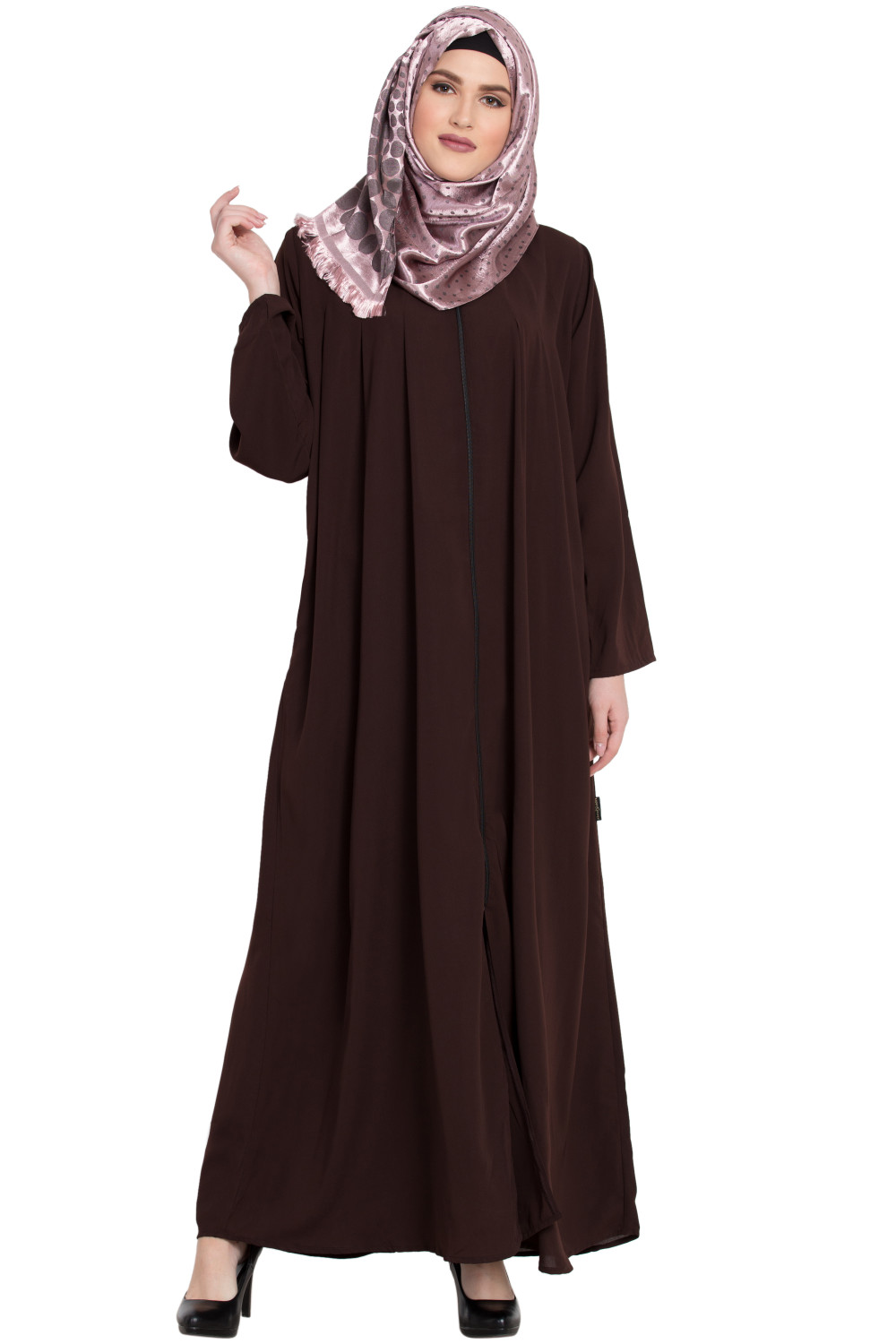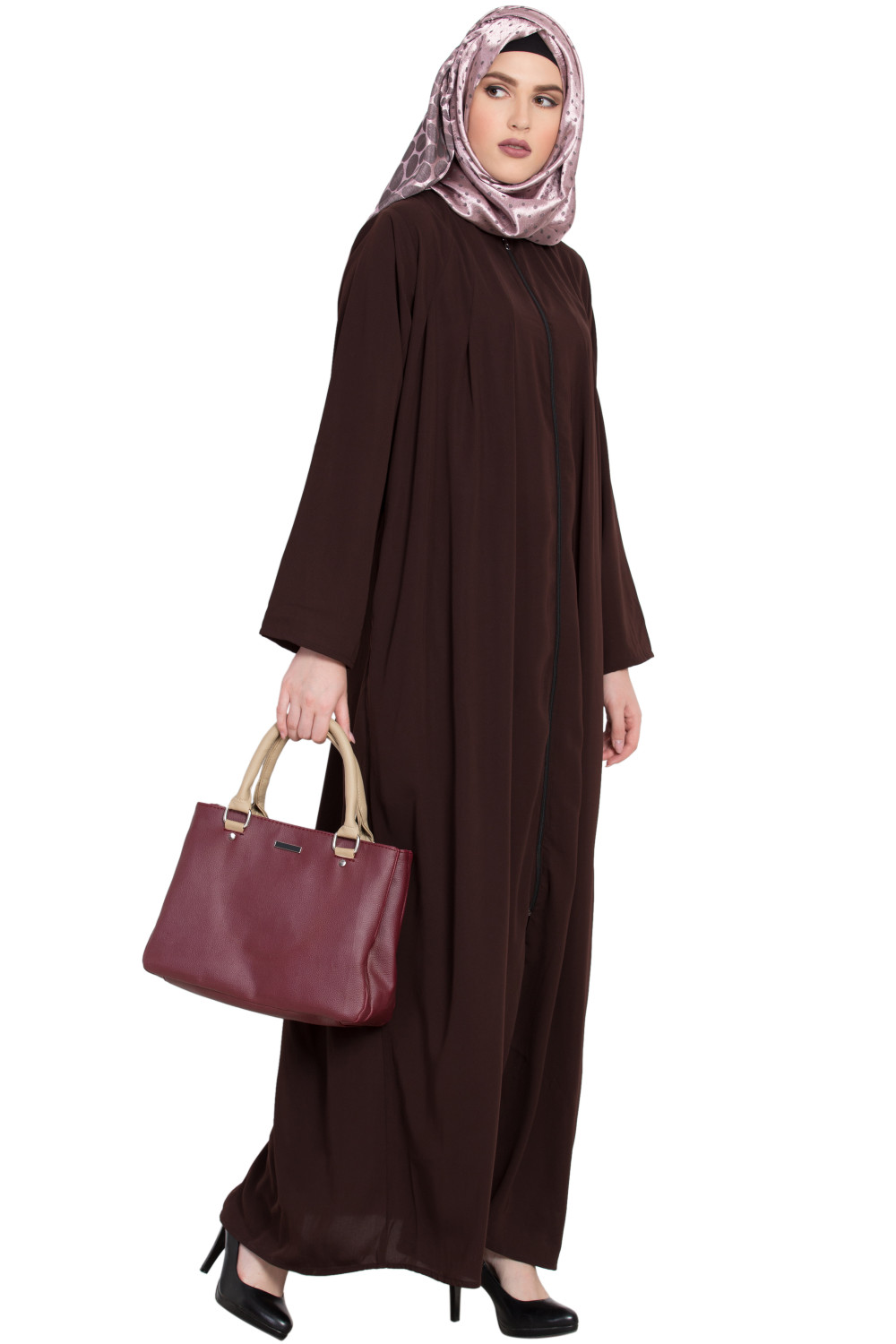 Coffee-Coloured Zipper Abaya: Fabric and Finish
