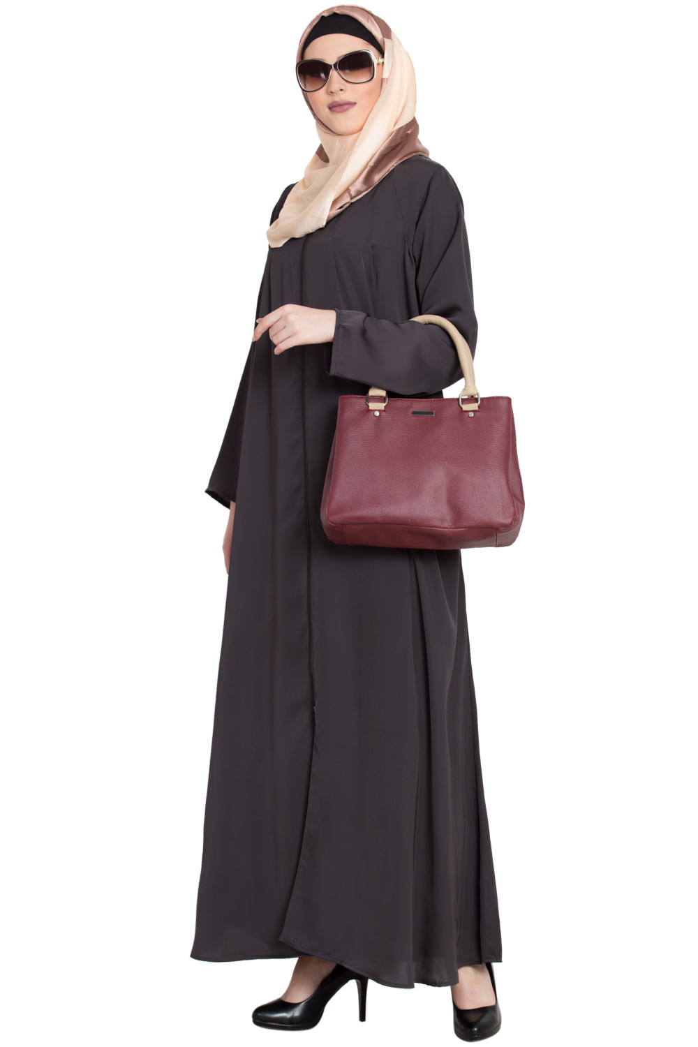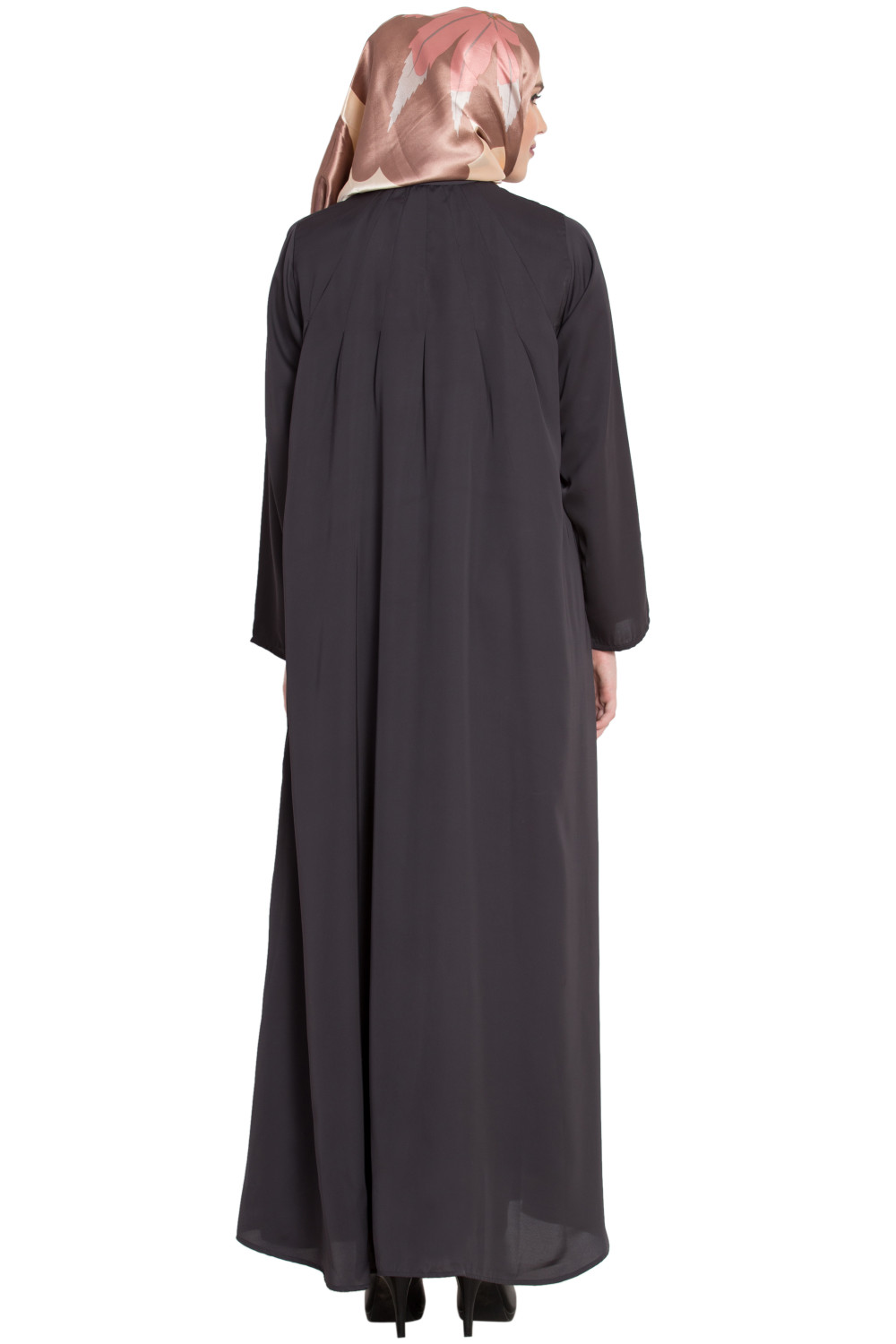 Zipper Open Abaya: Stunning Best Dark Grey Nida Pintuck